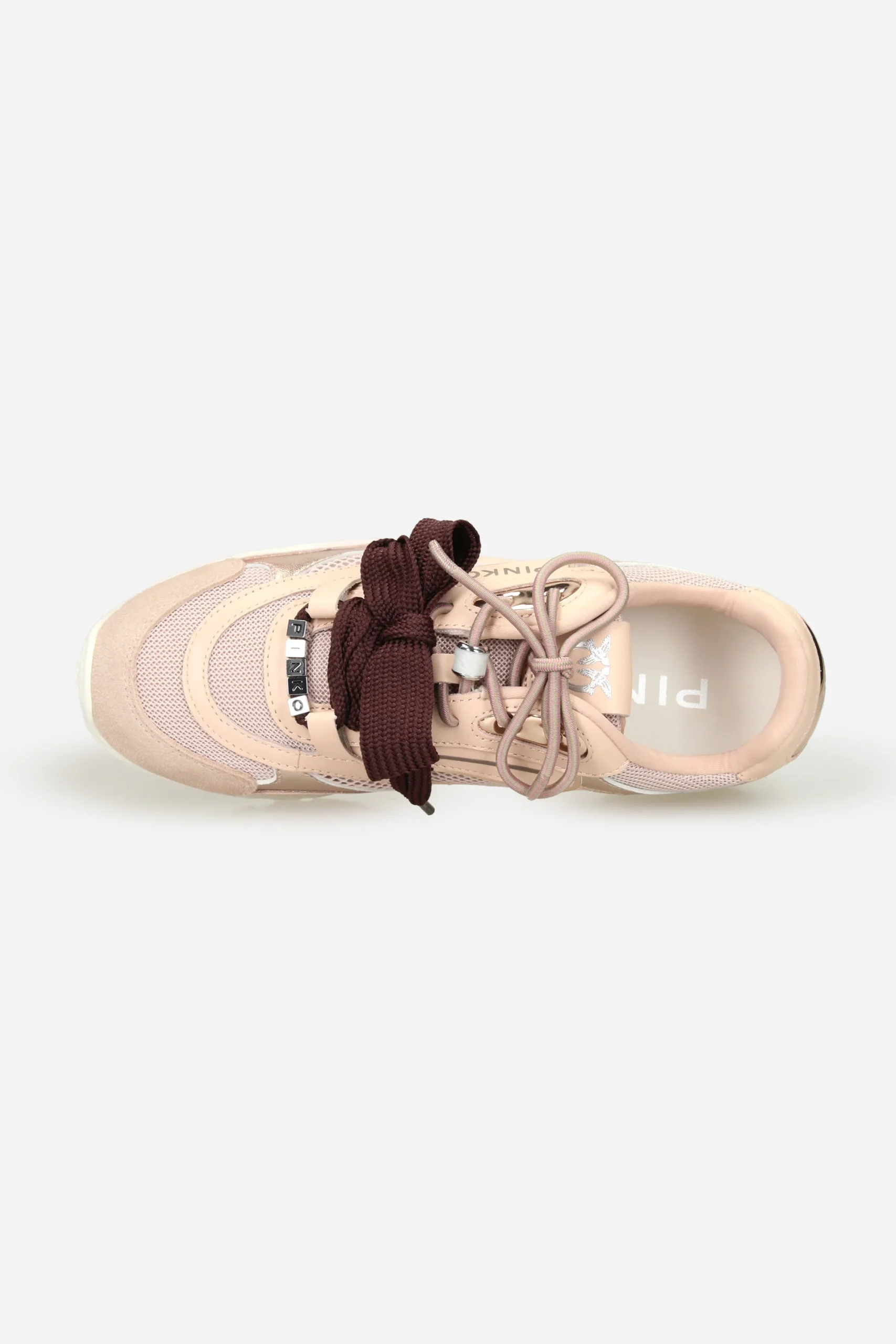 I lacci sono impreziositi da accessorio gioiello removibile e logo lettering PINKO, doppio laccio in dotazione.