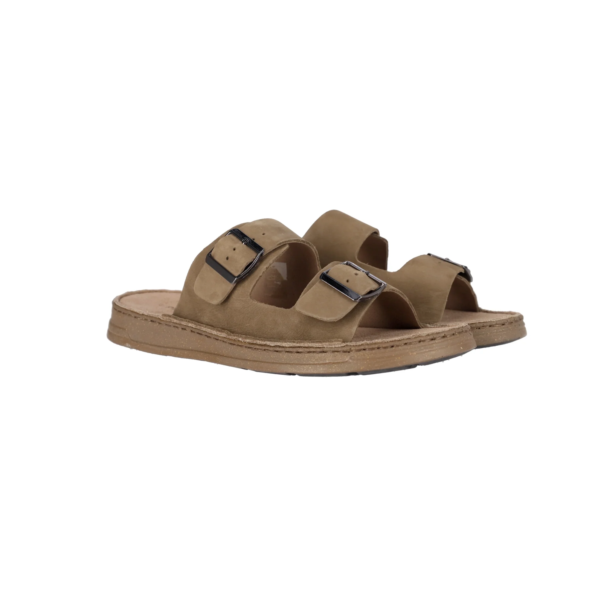 Presenta suola in gomma, fondo antiscivolo, plantare dalla forma anatomica in sughero e lattice.