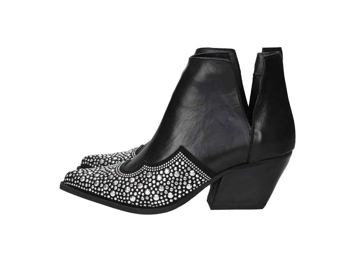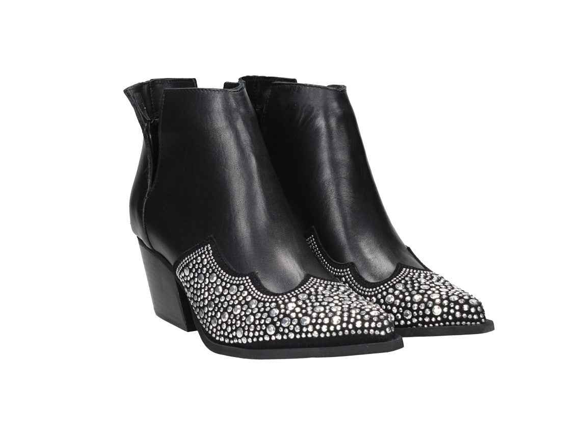 Texano in pelle con strass, tacco alto 7cm, suola in gomma, interno foderato.