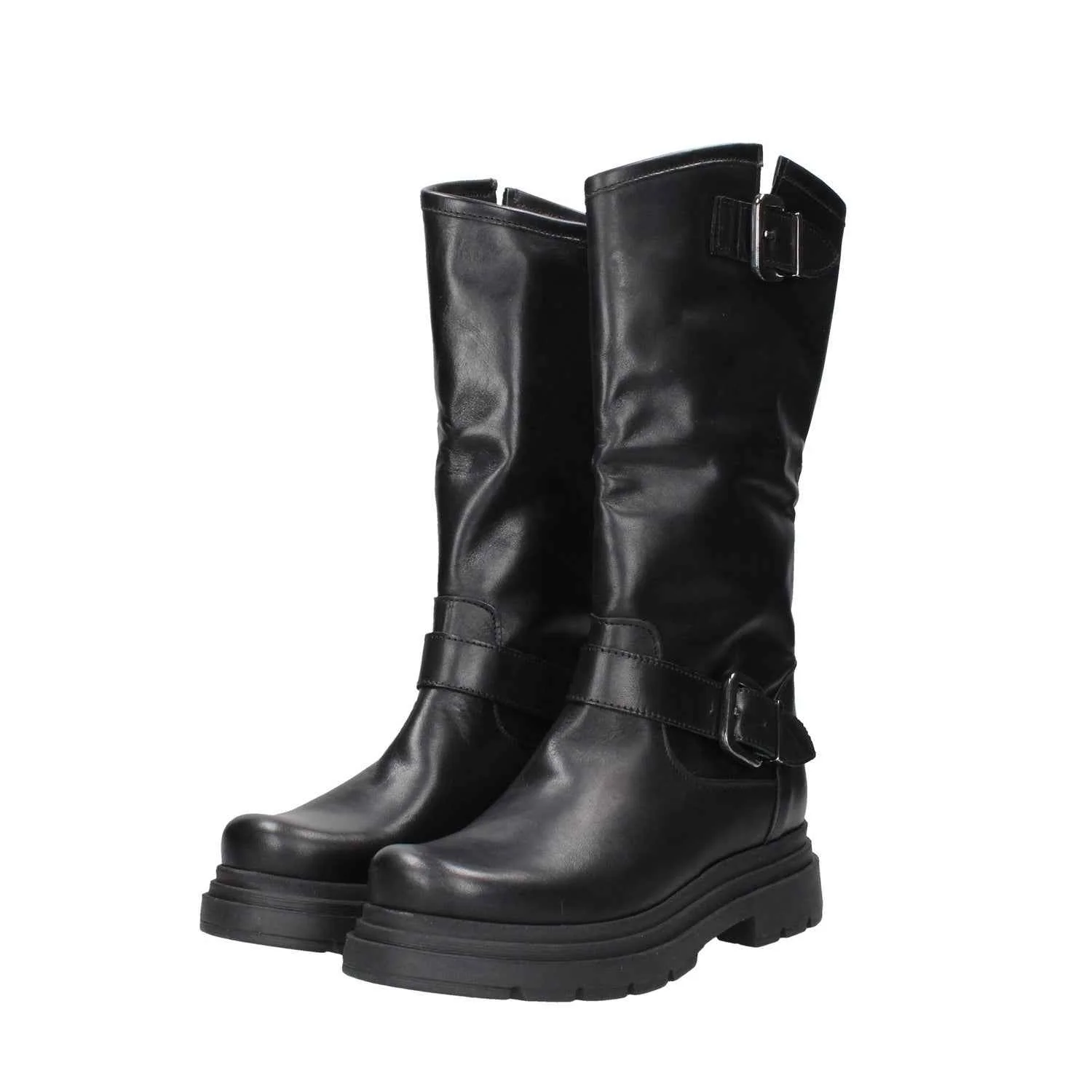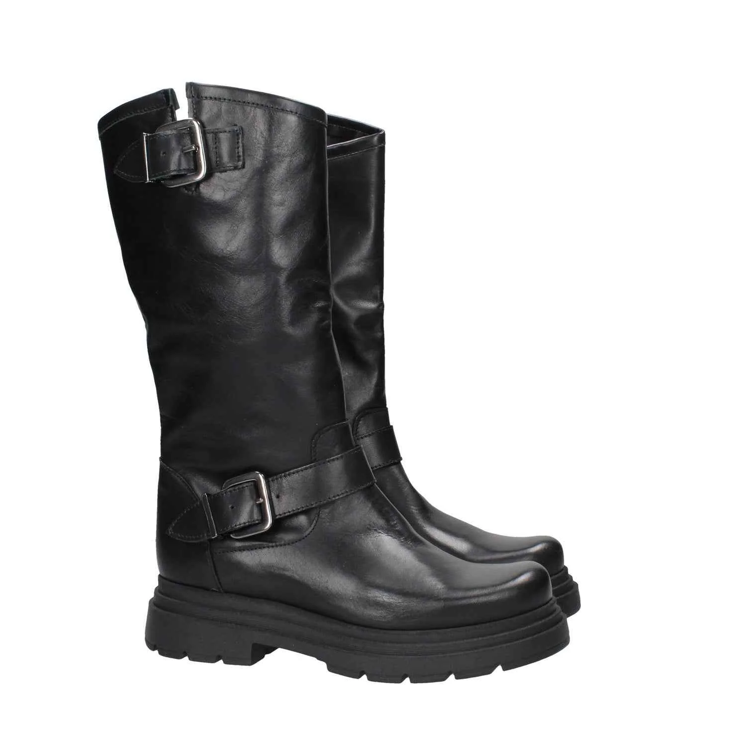 Stivale in pelle, tacco alto 4cm, suola in gomma, modello slip-on, interno foderato.