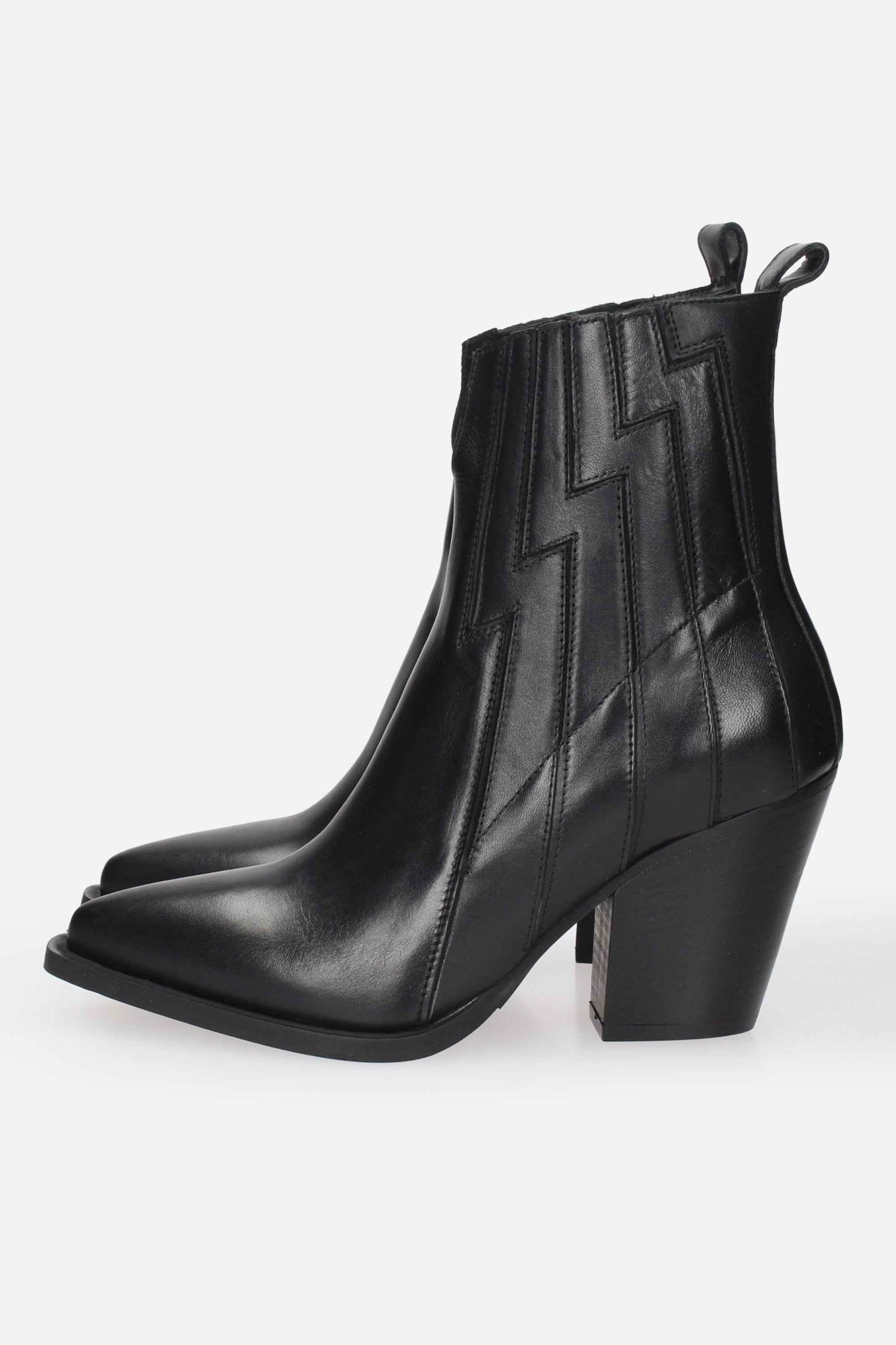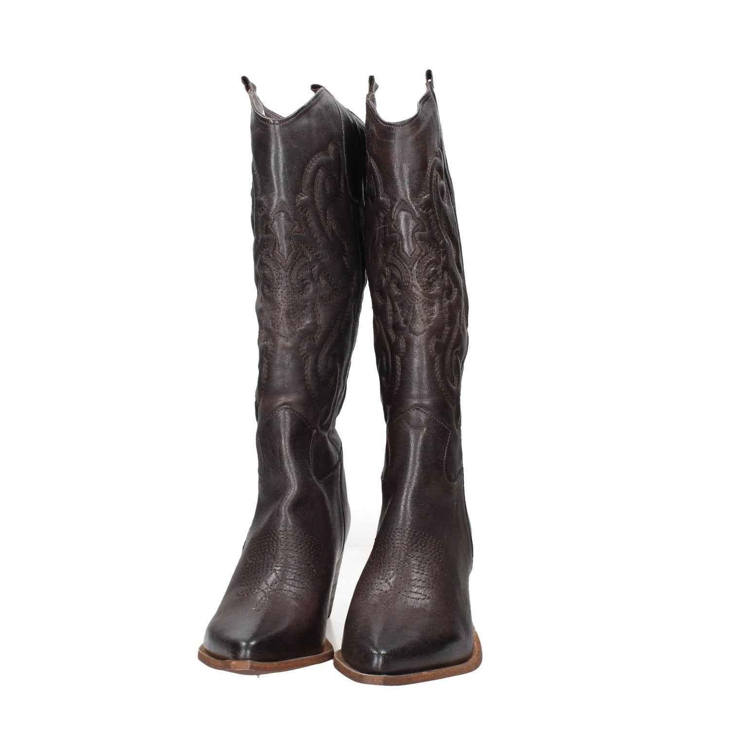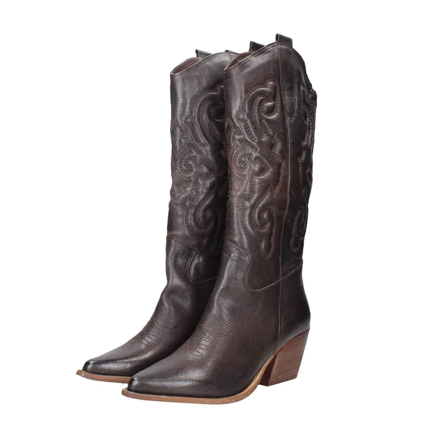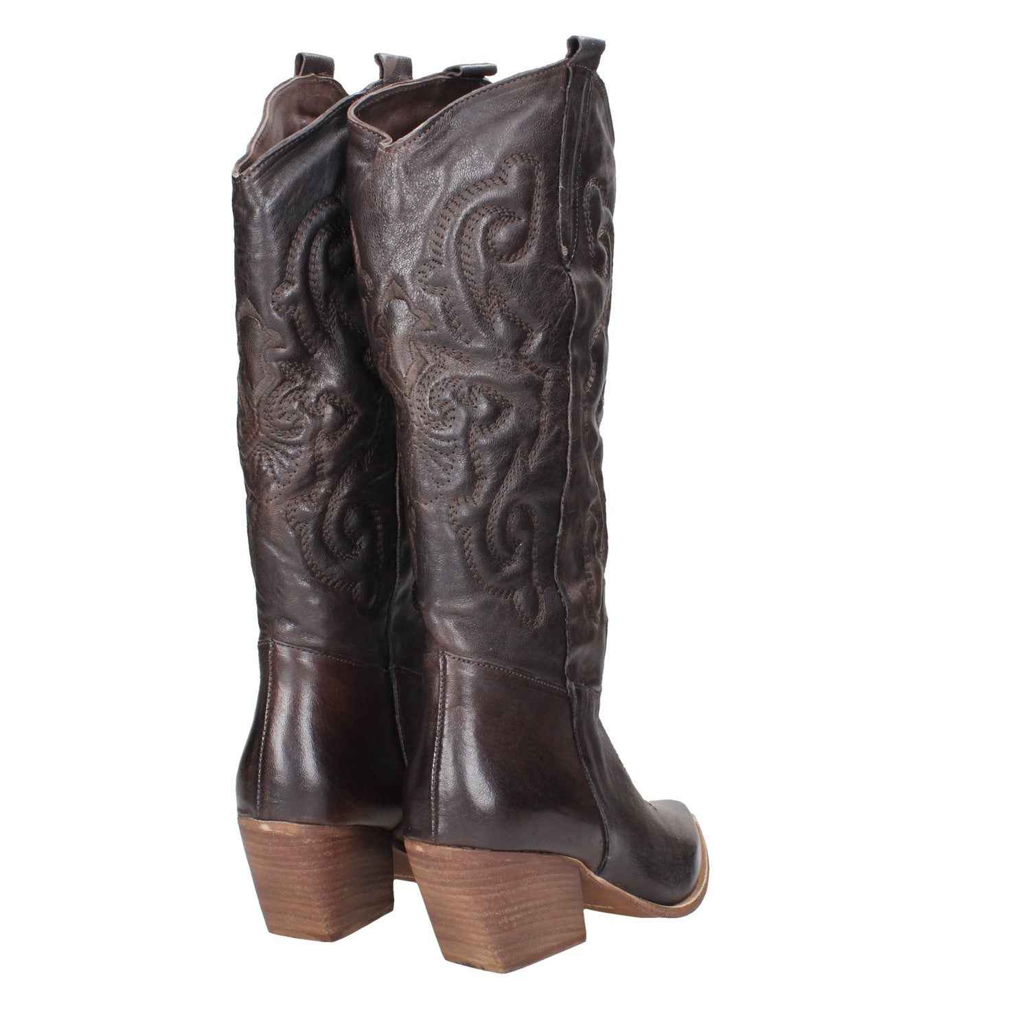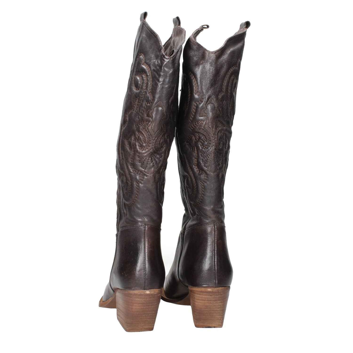 Texano in pelle, tacco alto 7cm, suola in gomma, modello slip-on, interno foderato.