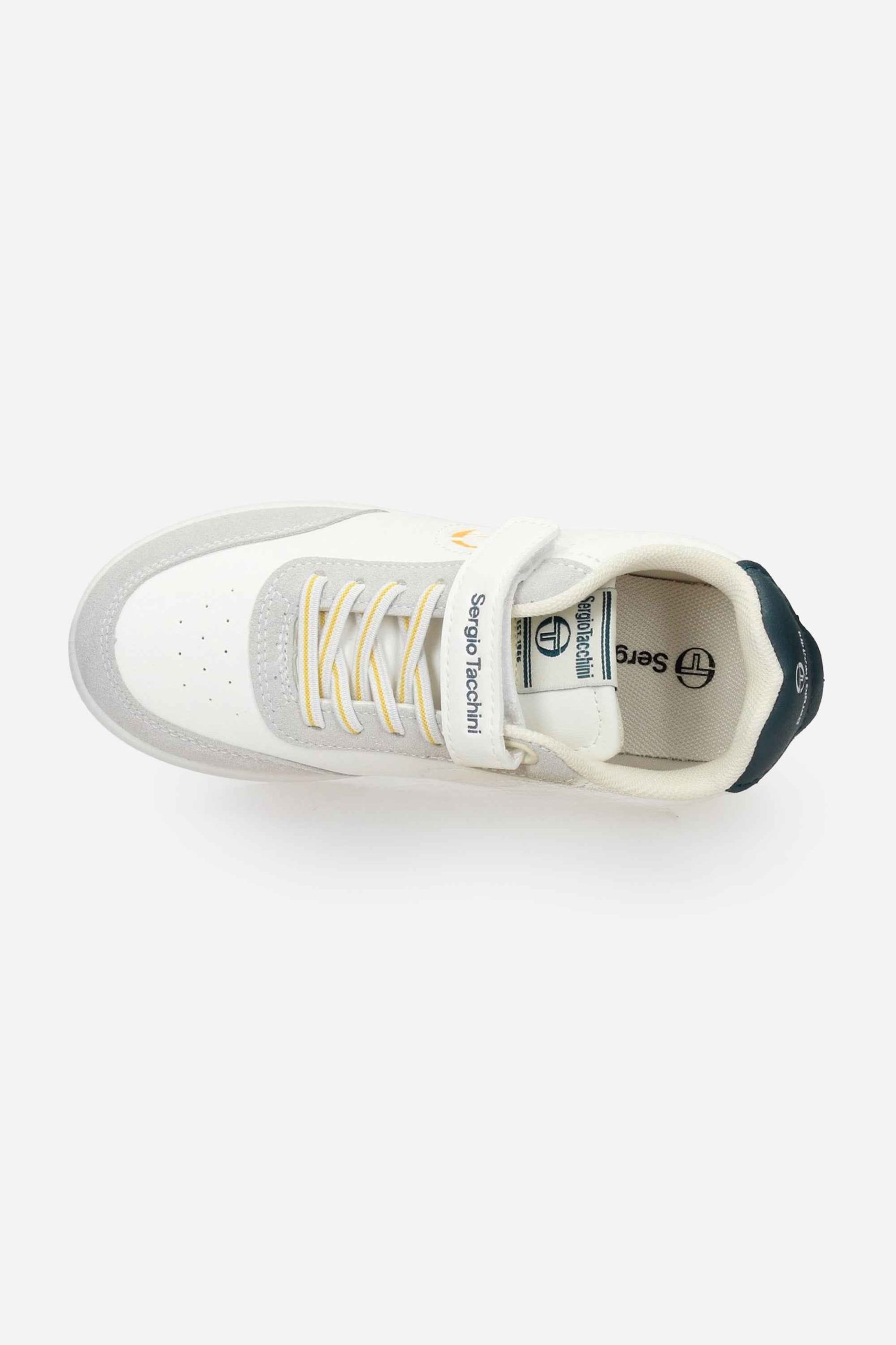 La sneakers è realizzata in ecopelle e ecocamoscio.