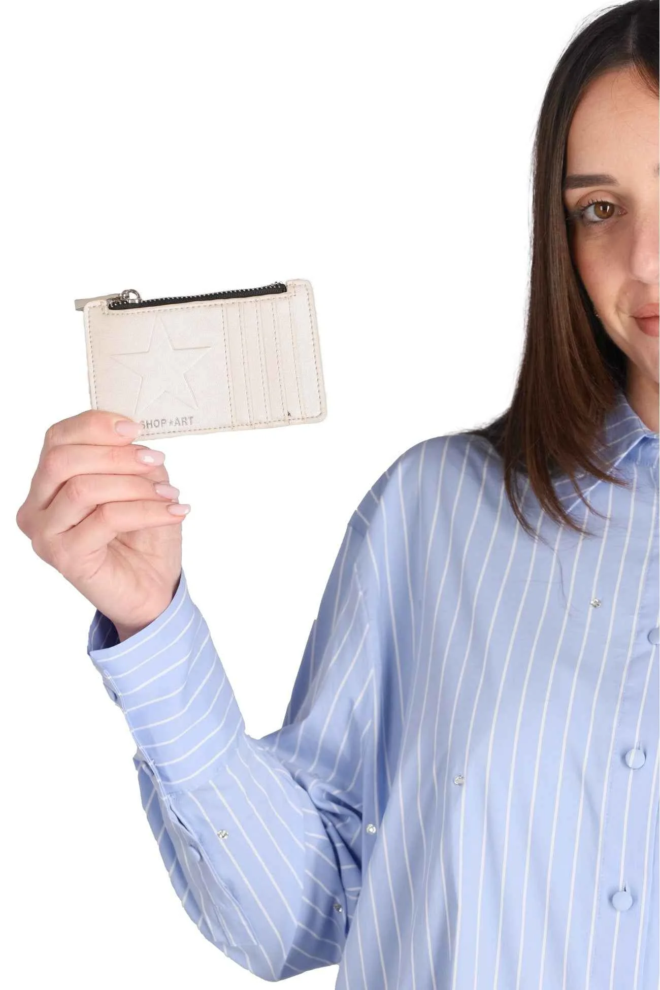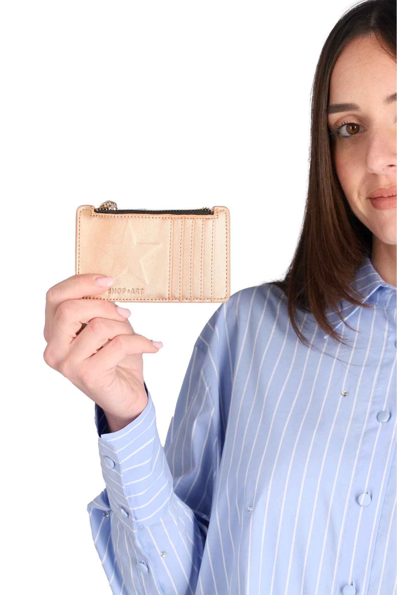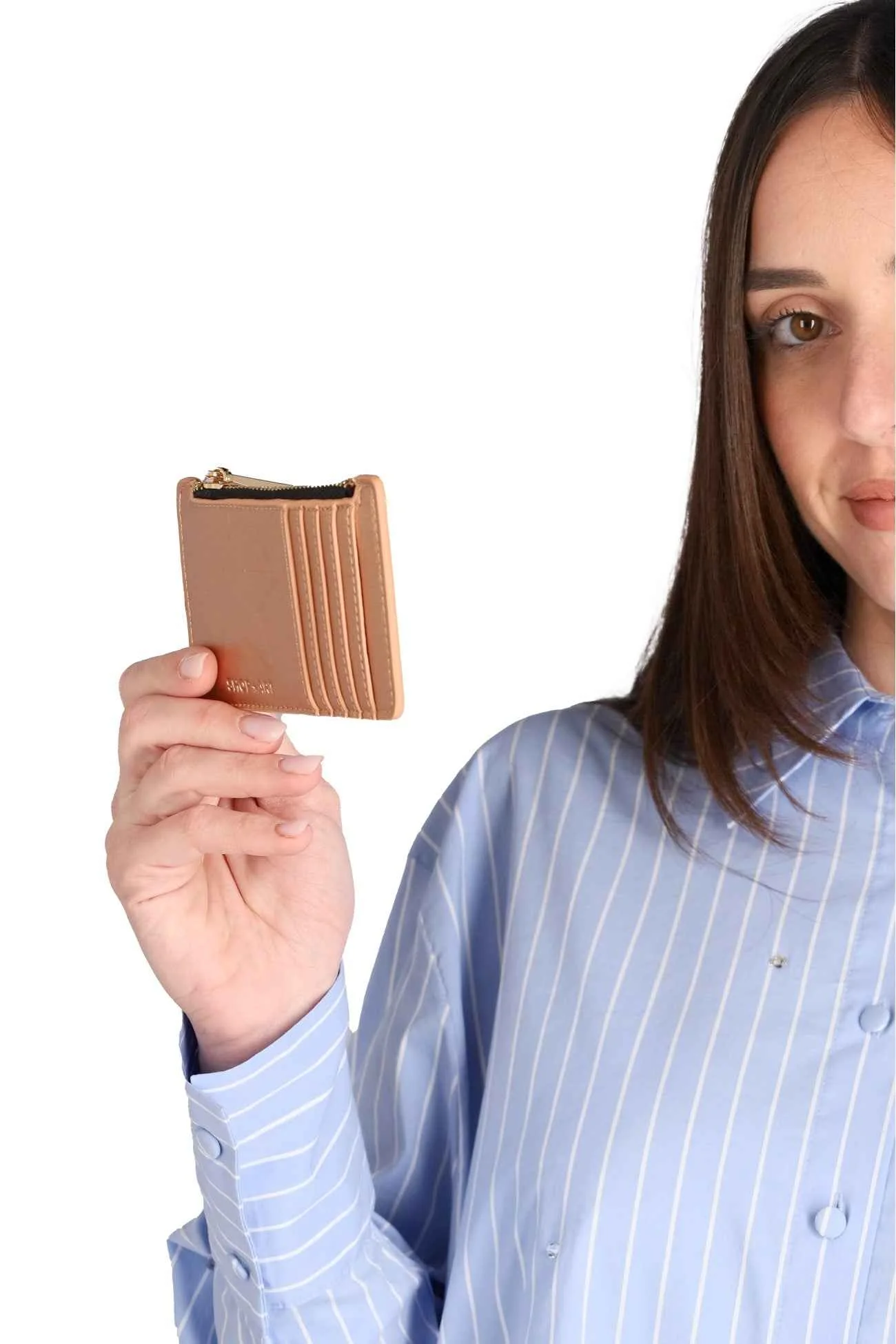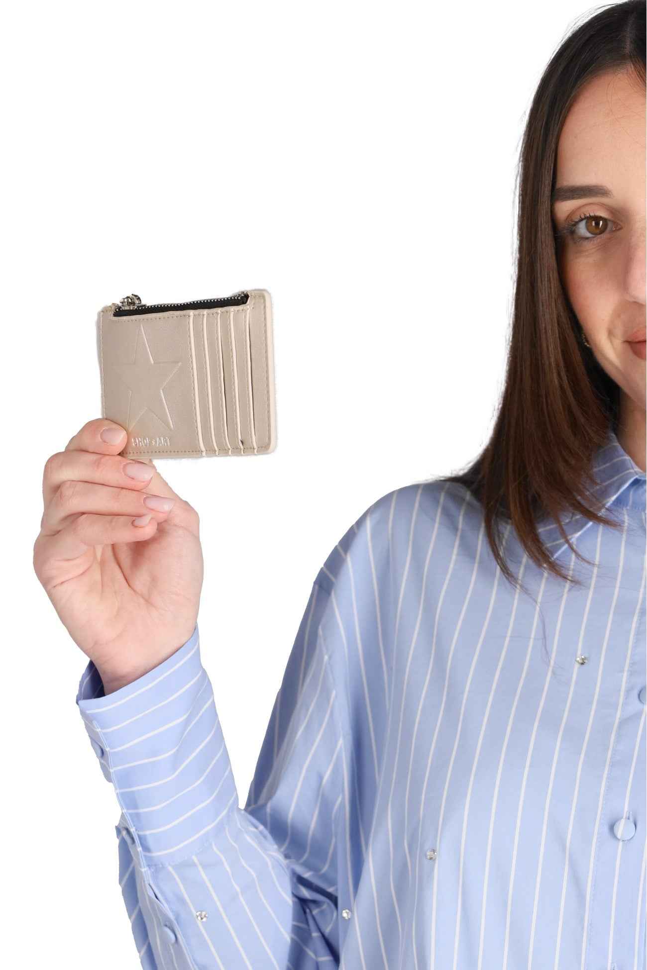 Il portafoglio è realizzato il poliuretano, con logo sul davanti e chiusura con zip, con multitasche portadocumenti.
