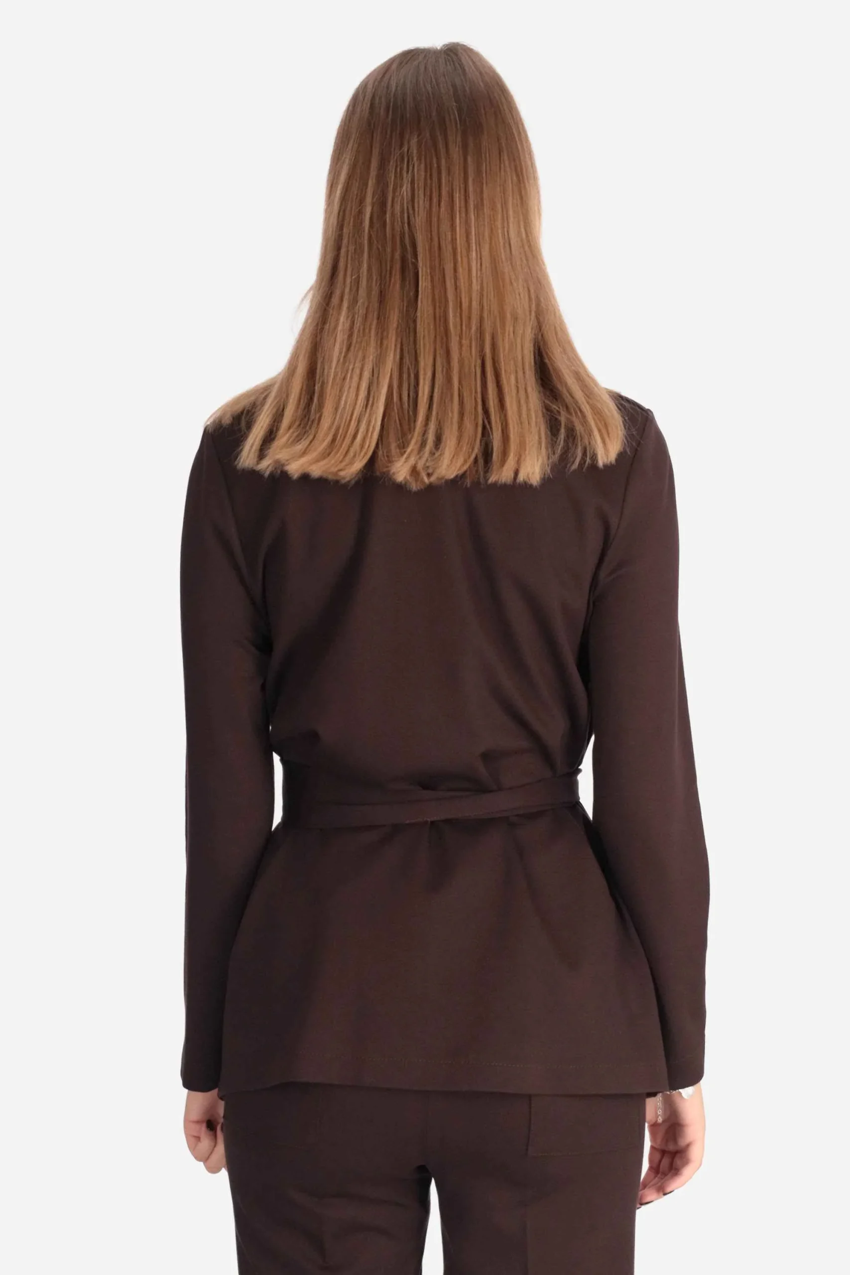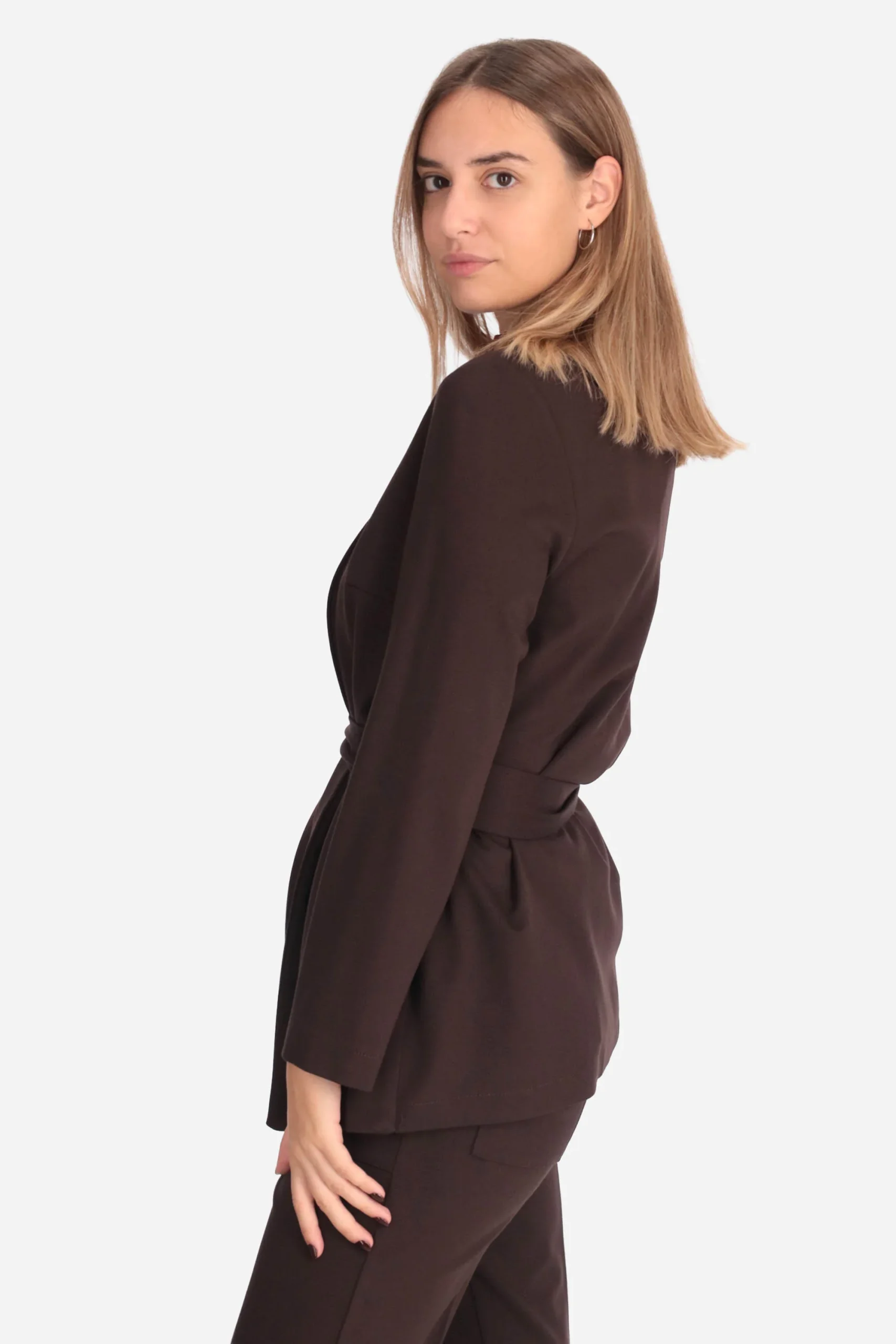 La giacca è realizzata in viscosa, poliammide ed elastan.