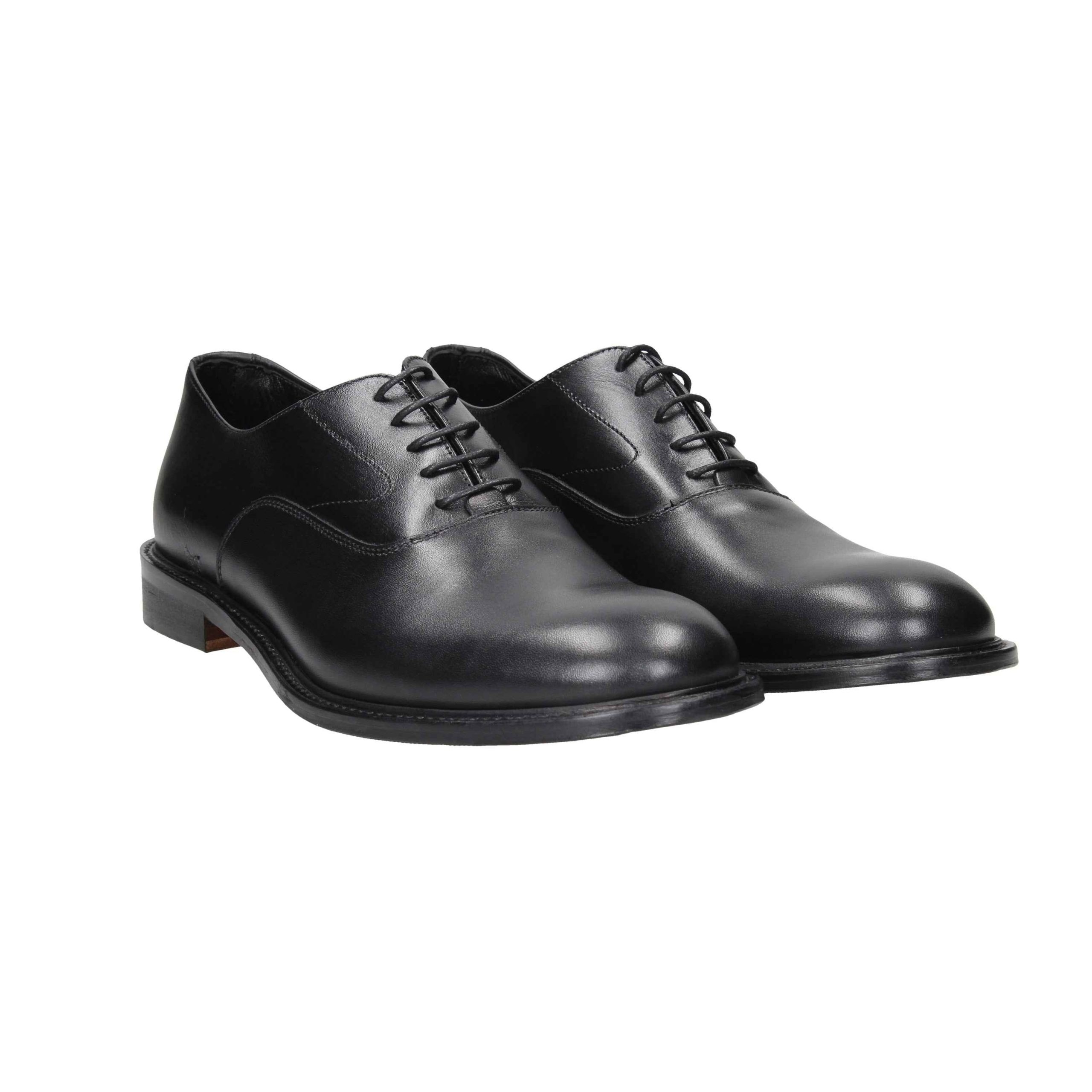 Scarpa in vitello con lacci in nylon, suola in cuoio, interno in cuoio.