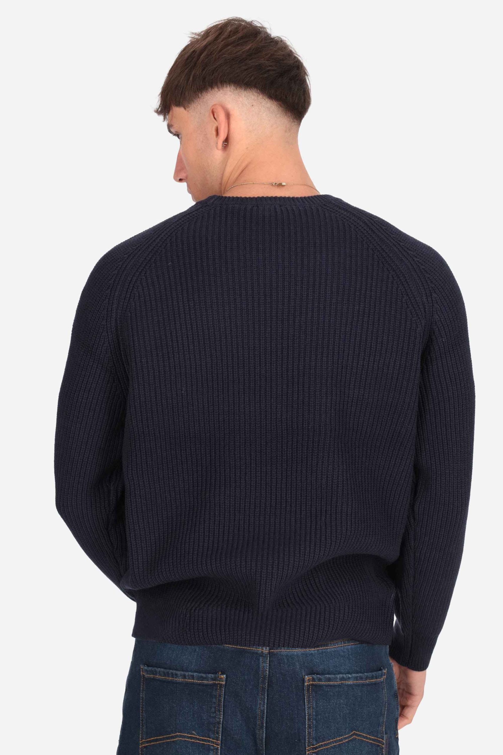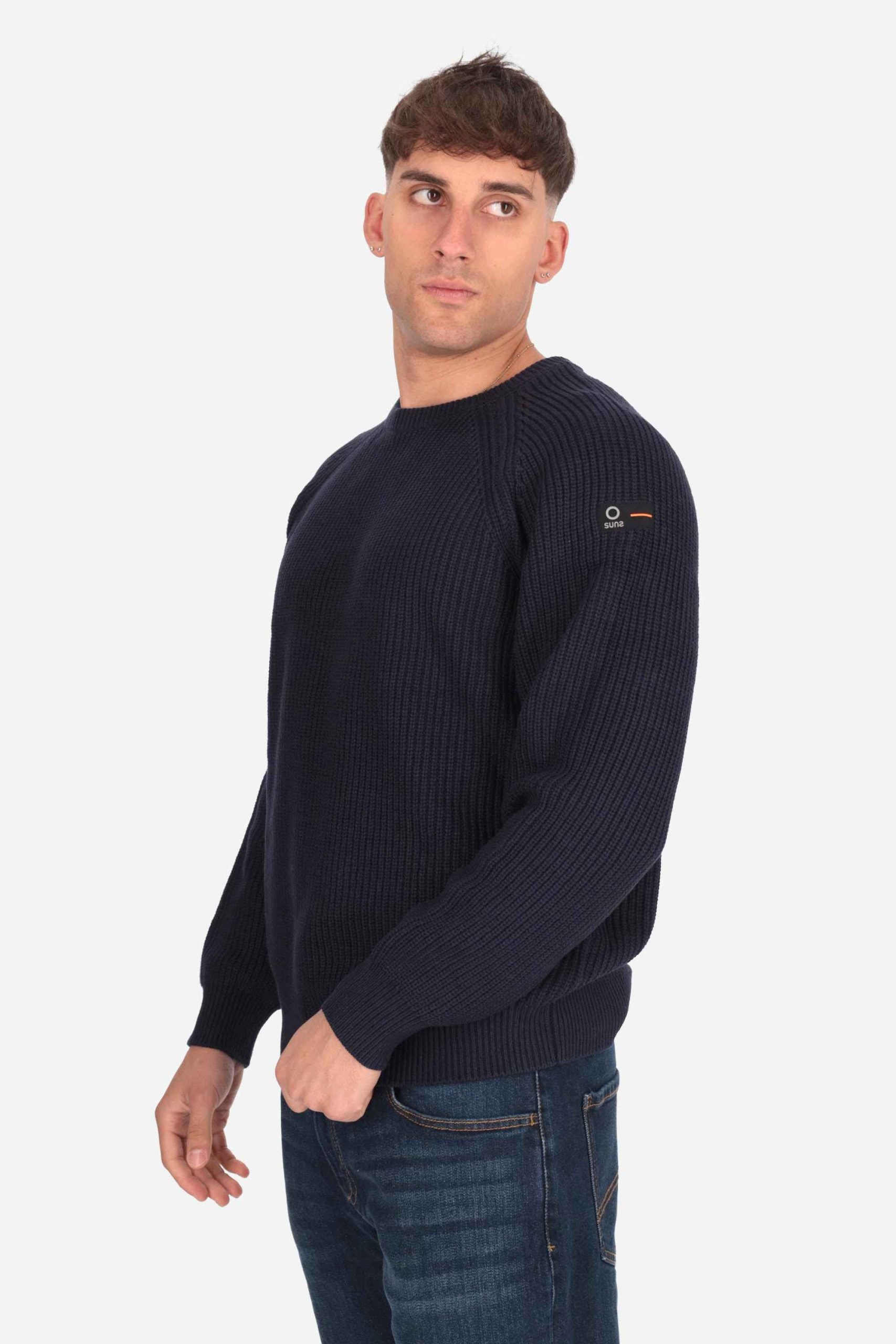 La maglia è realizzata in cotone e acrilico, con lavorazione a grana grossa.