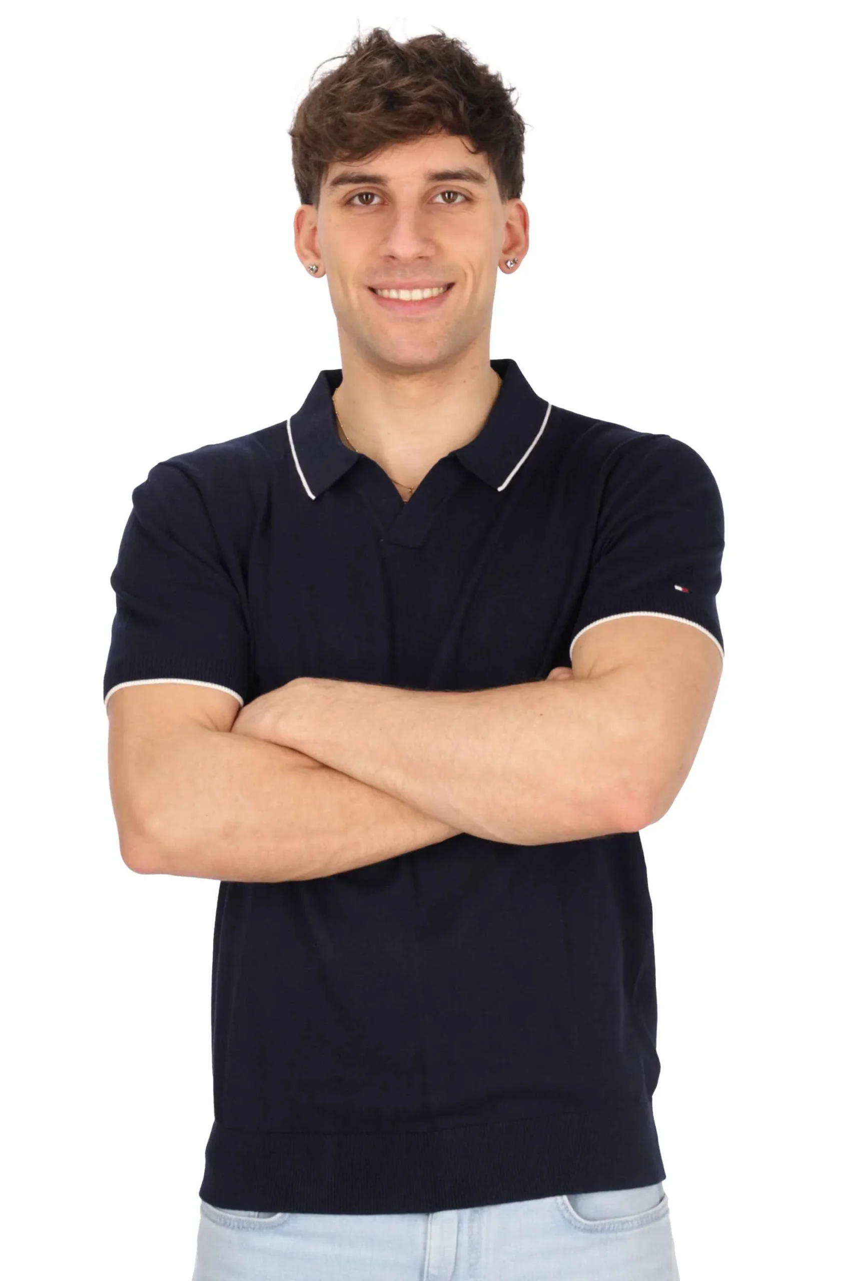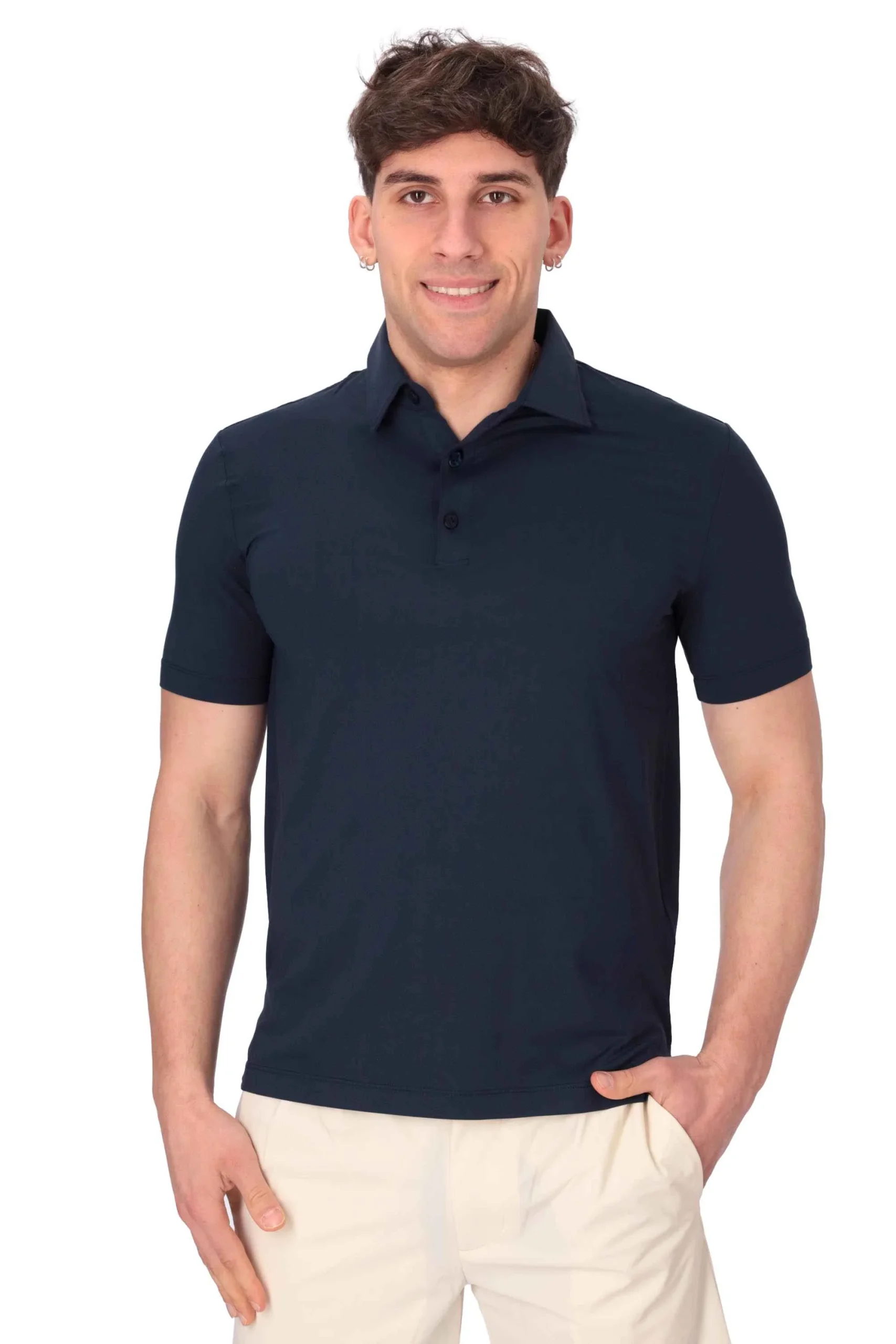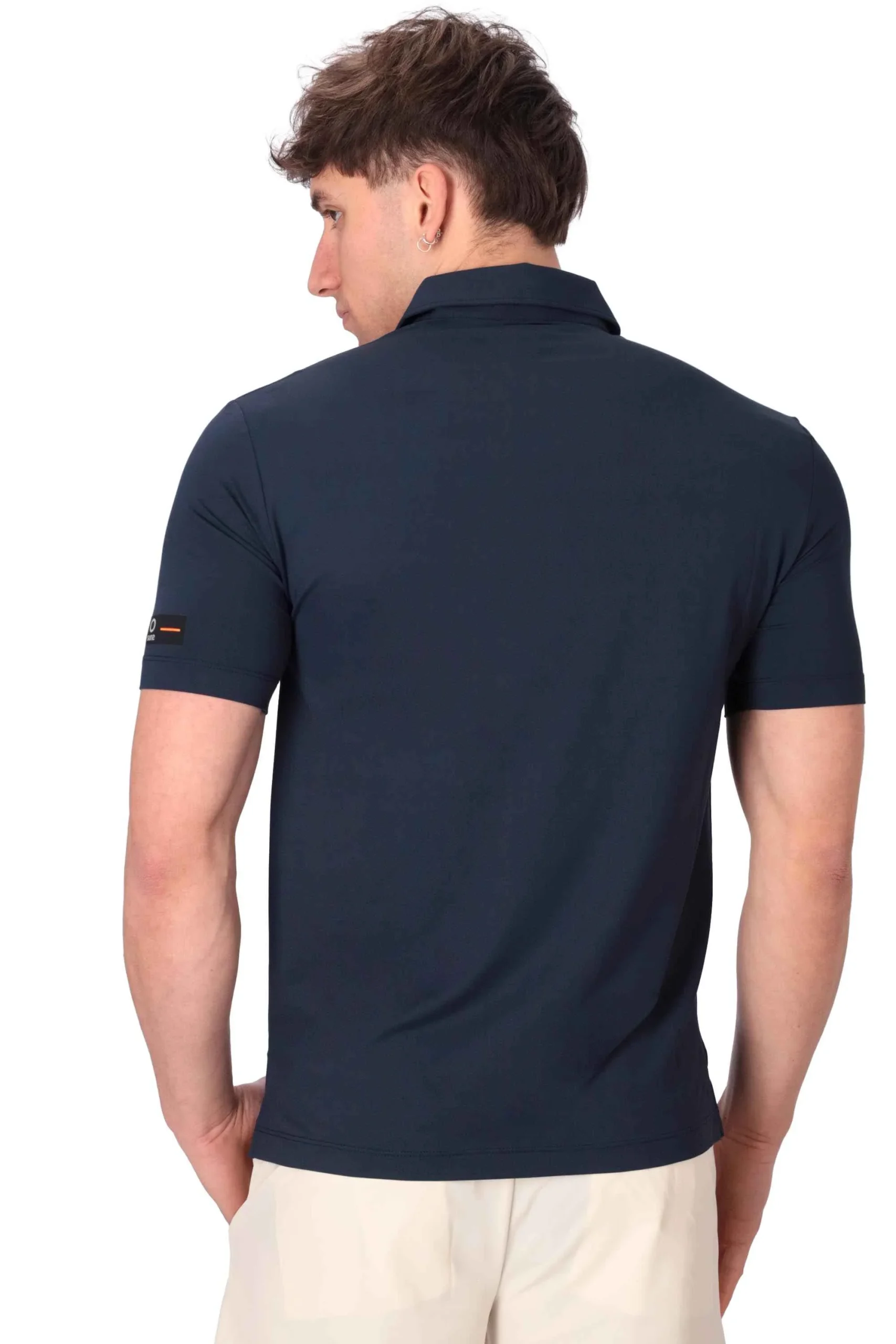 La polo è realizzata in tessuto tecnico leggero e traspirante, dall’asciugatura rapida.