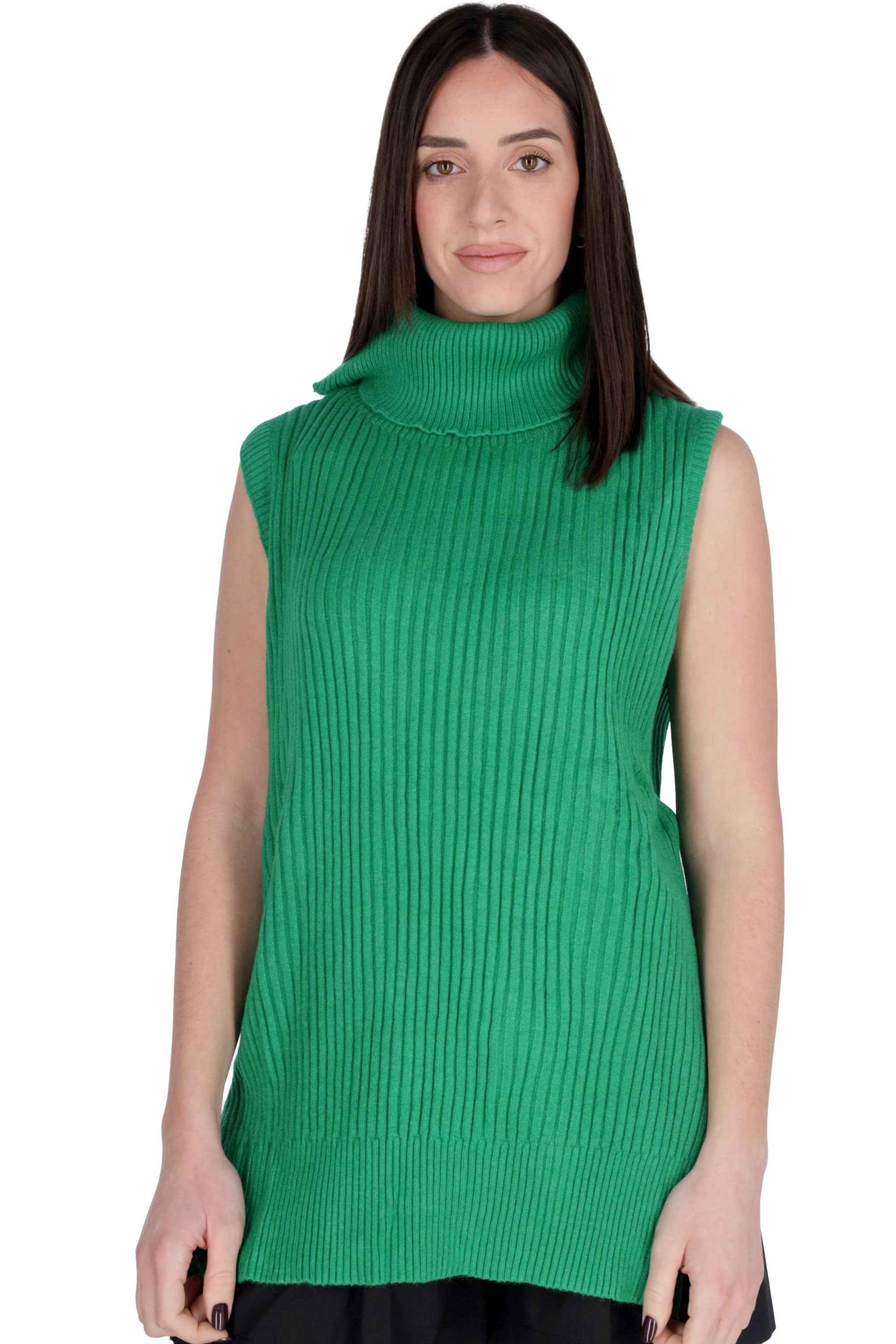Presenta spacchi laterali, collo alto e smanicato.
