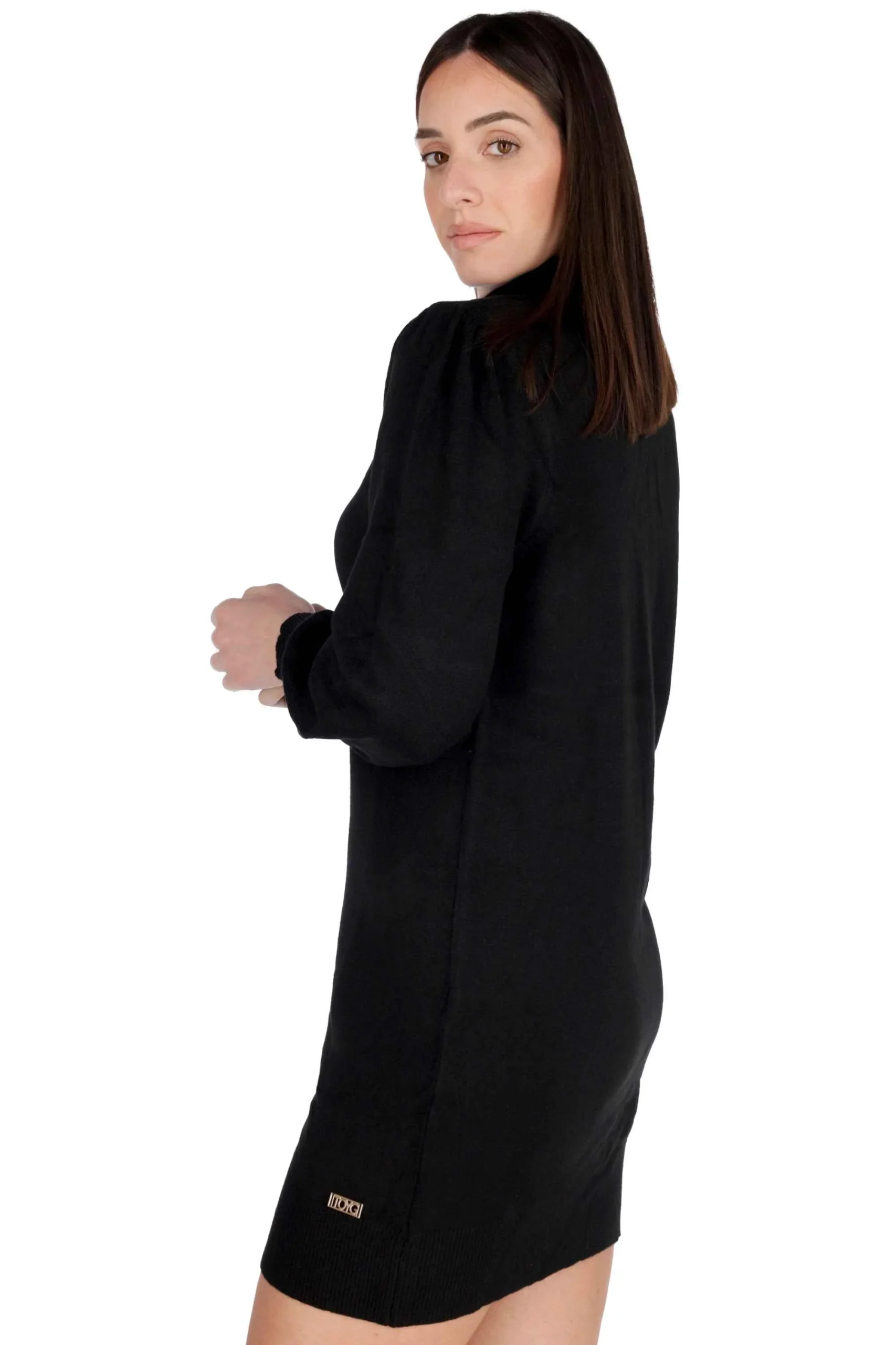 Presenta logo in metallo sul fondo, maniche lunghe leggermente a palloncino e polsini a costine, collo alto.