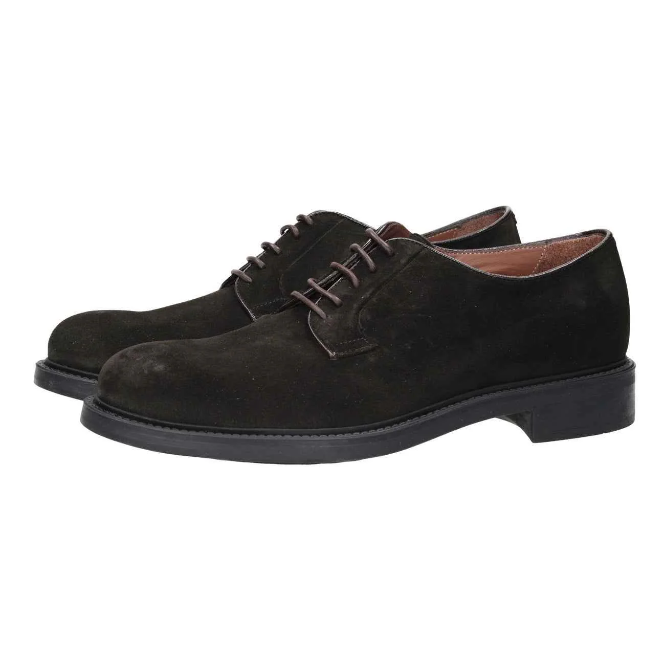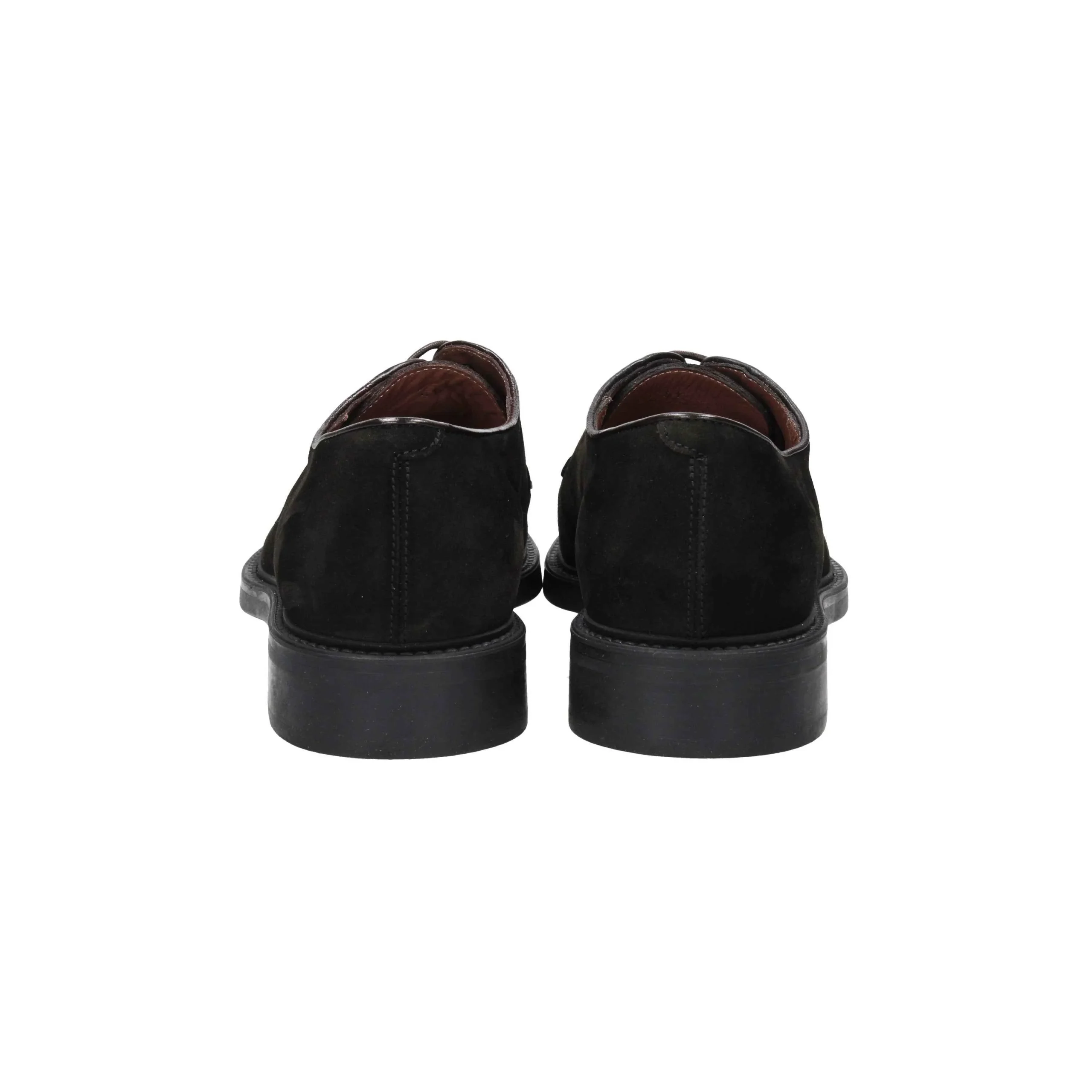 Scarpa in camoscio con lacci in nylon, suola in gomma, interno in pelle.