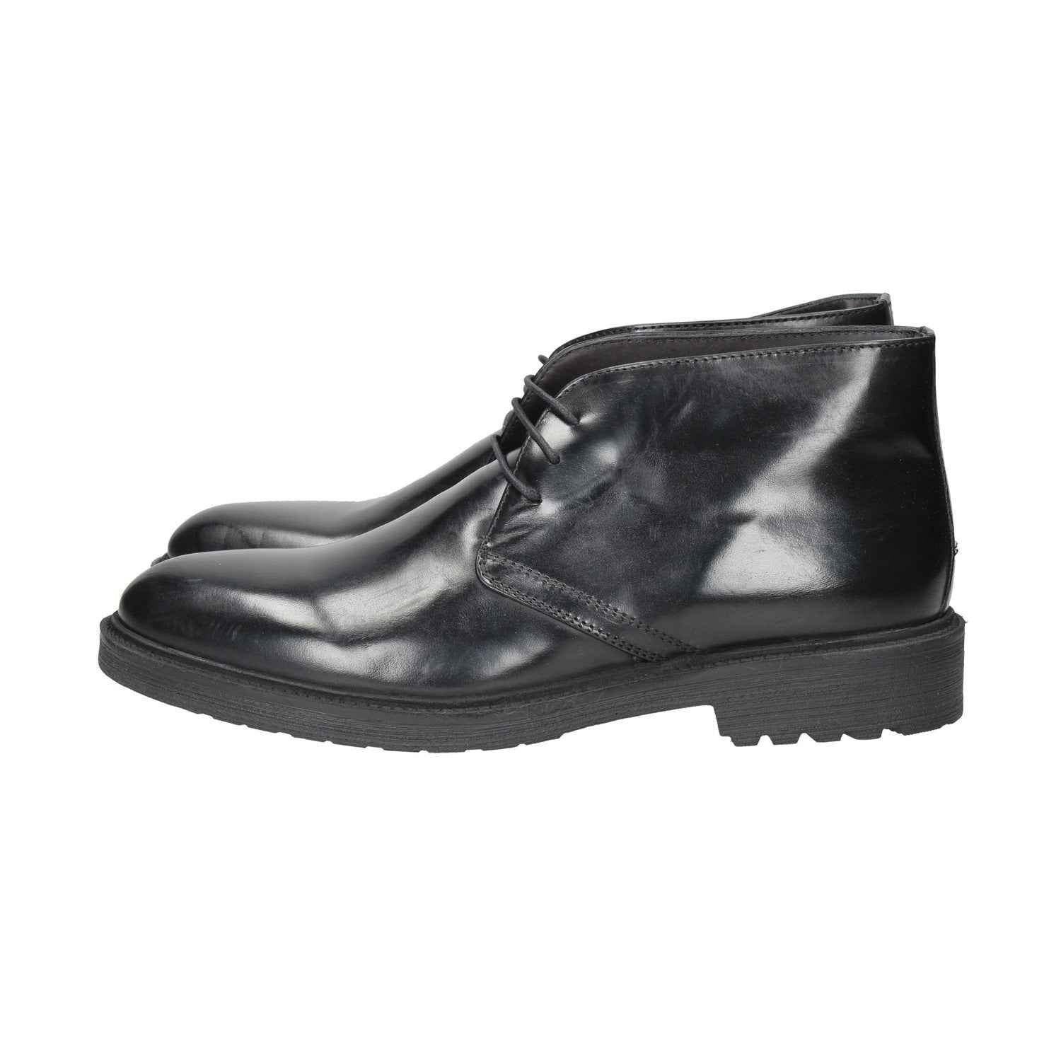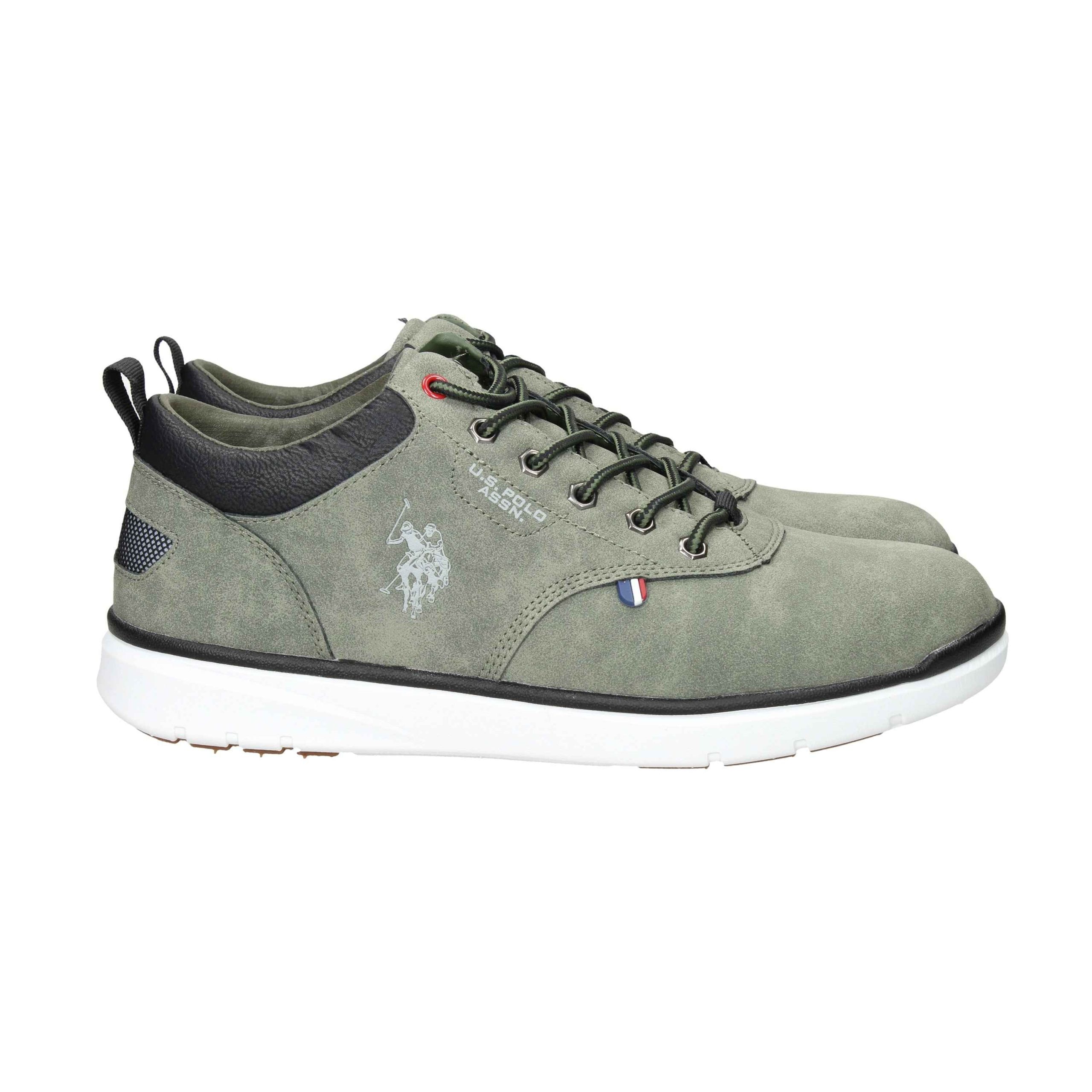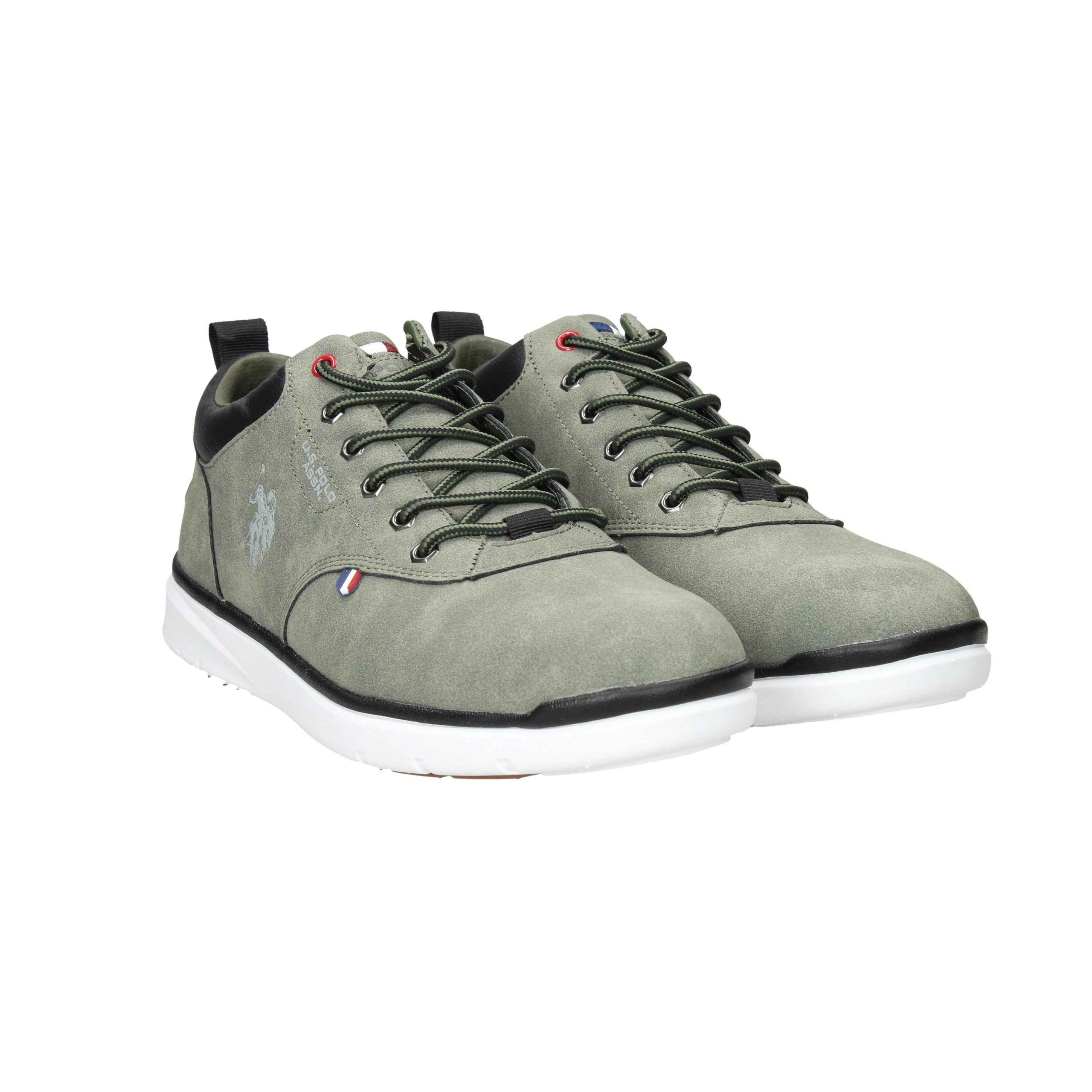 Polacco in ecocamoscio, suola in gomma, fondo antiscivolo, con lacci in cotone, interno in pelle.