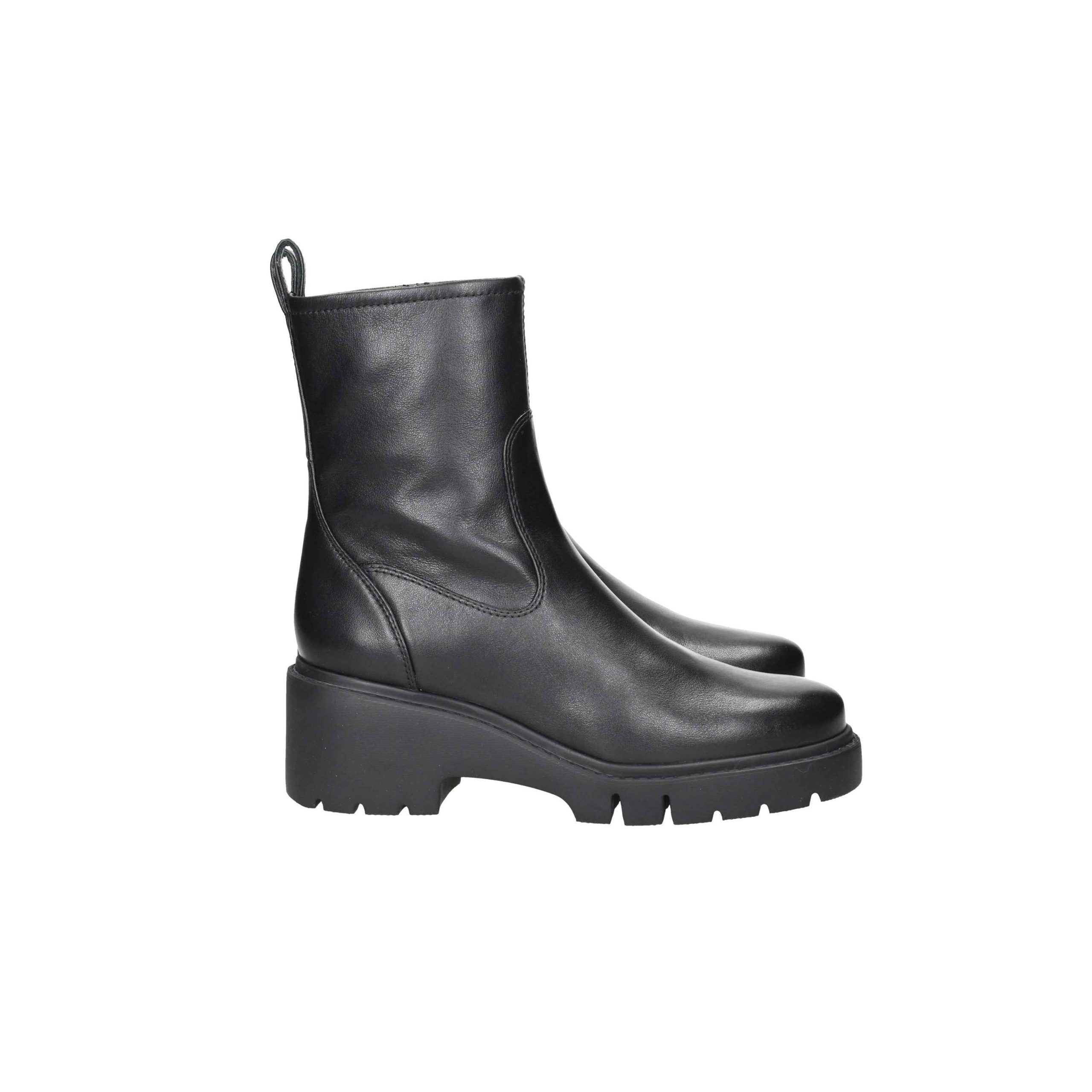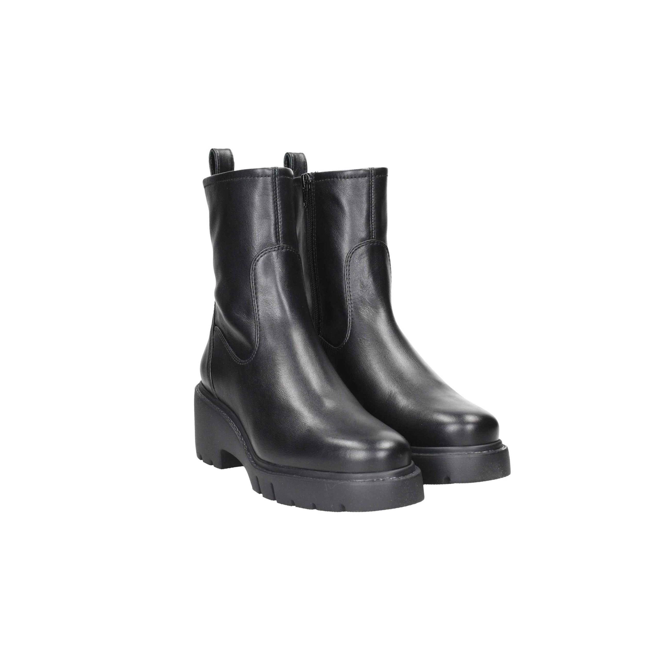 Tronchetto in pelle, tacco alto 6cm, suola in gomma, zip laterale, interno in pelle.