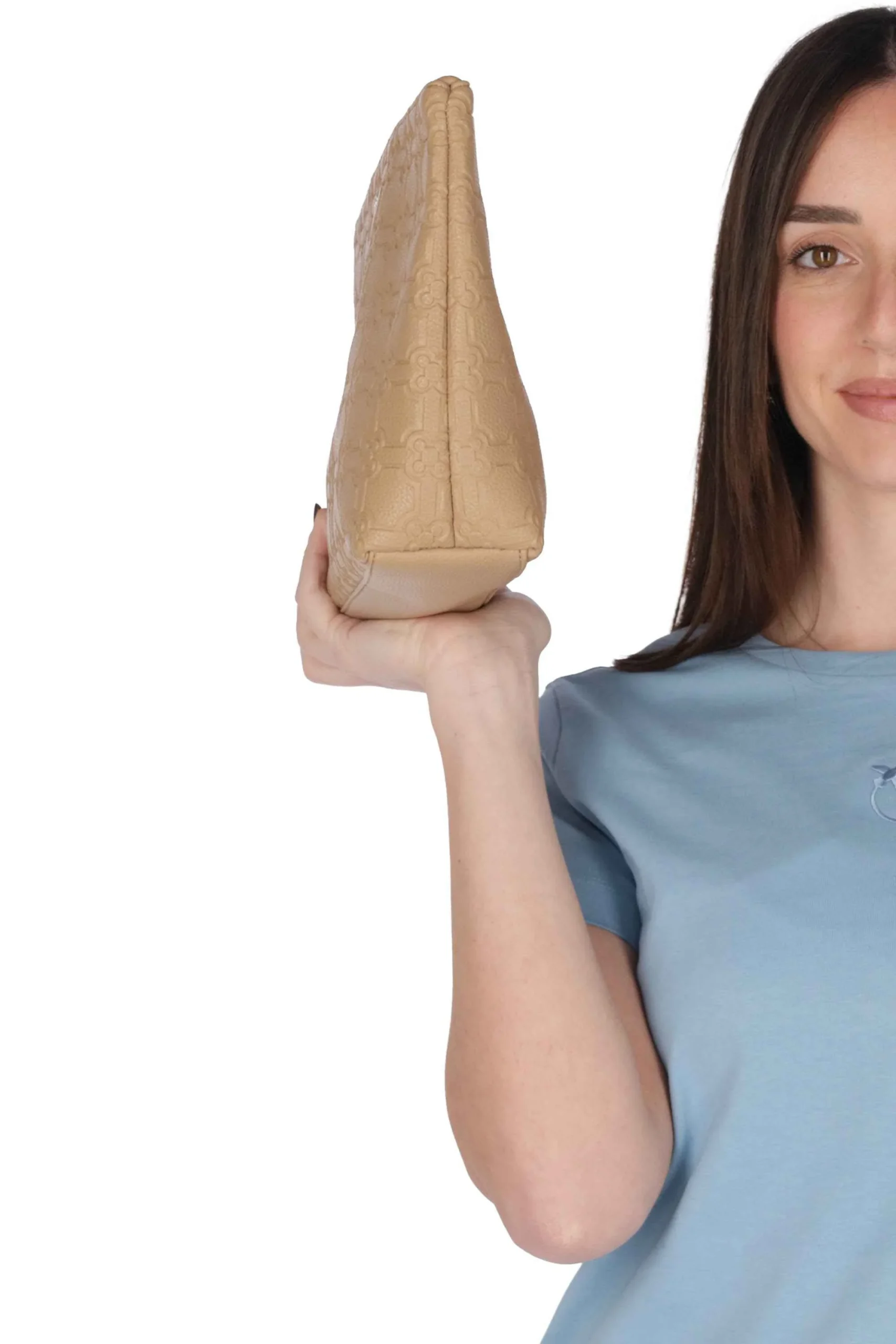 Il portatutto è realizzato in poliuretano con motivo logo in rilievo all over.