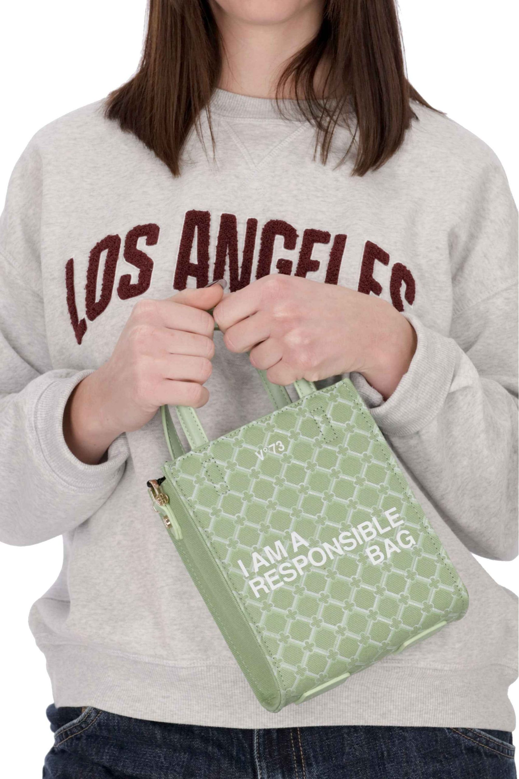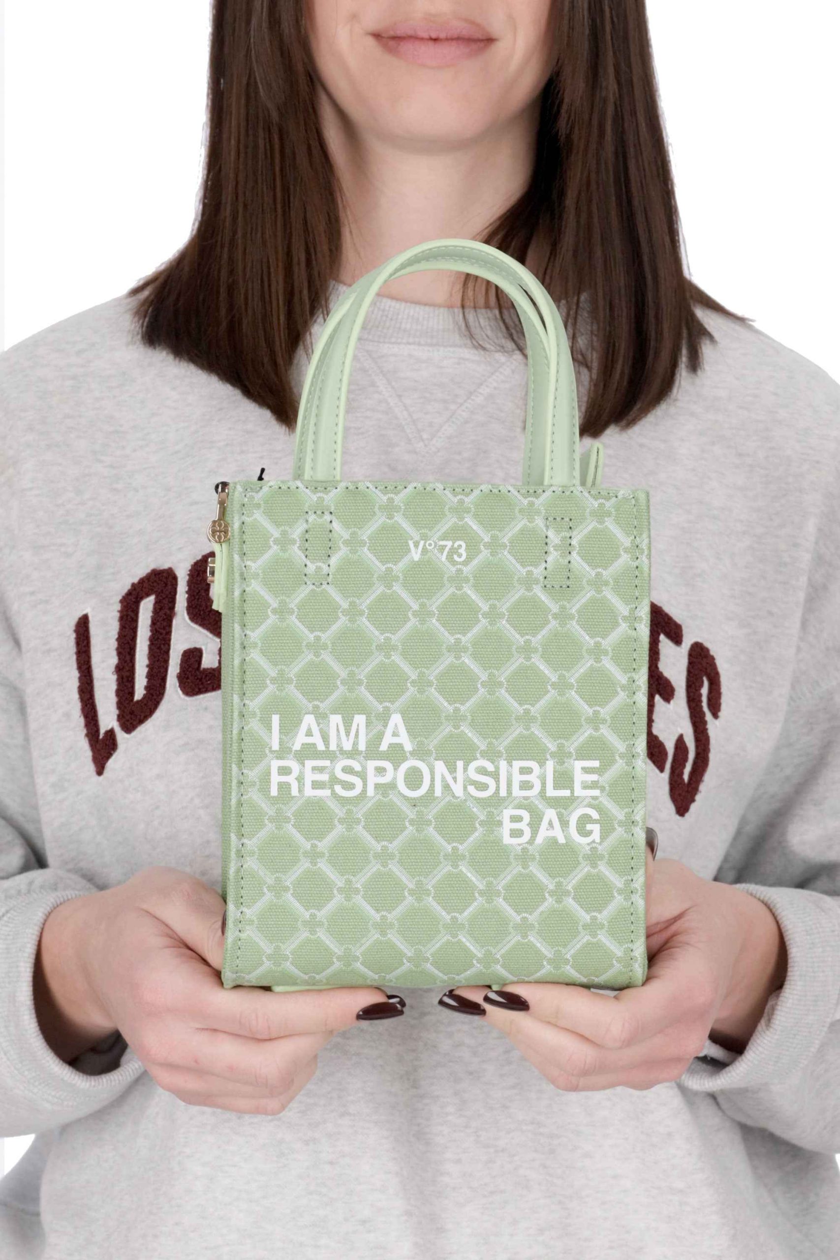 La borsa è realizzata in poliuretano, con motivo geometrico all over e logo sul davanti in contrasto colore.