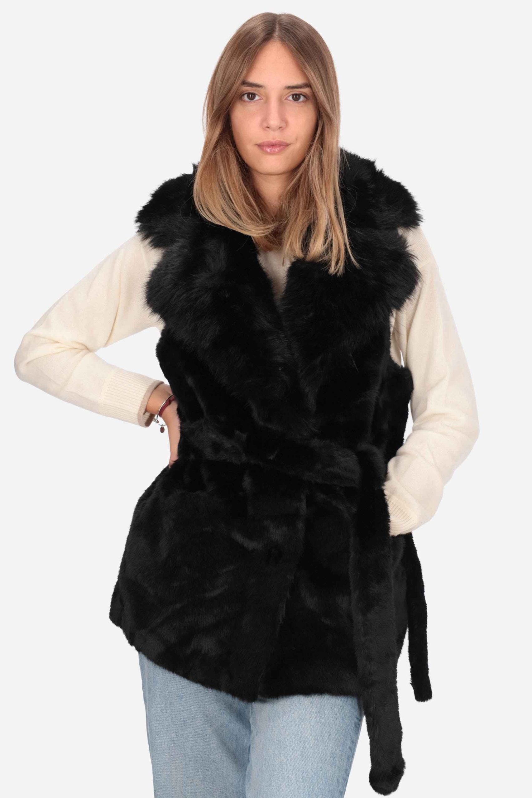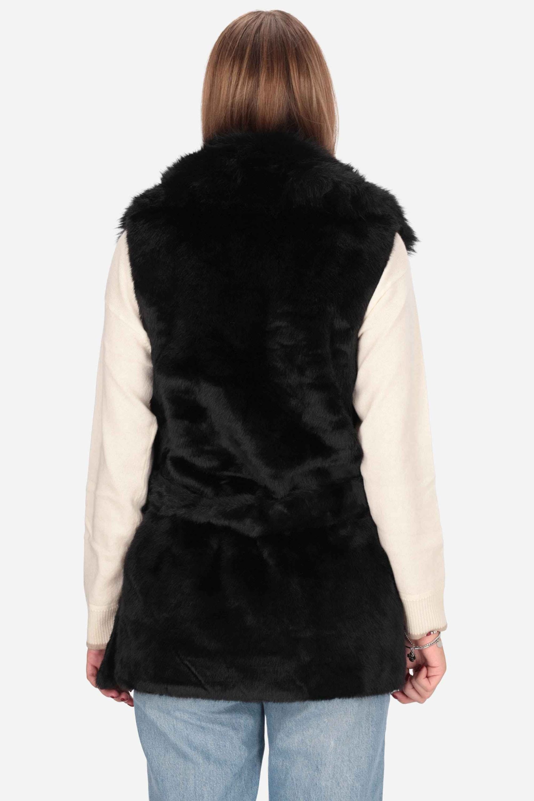 Il gilet è realizzato in poliestere con pelliccia sintetica.