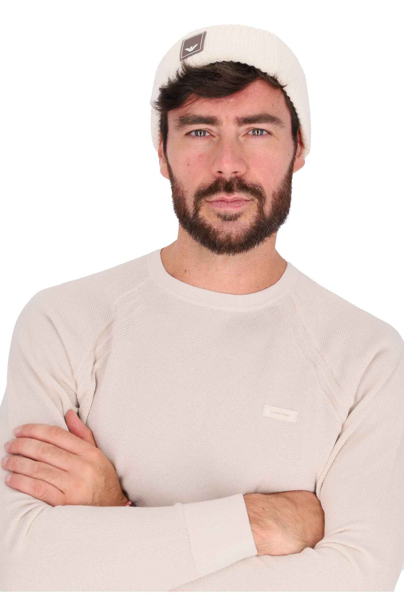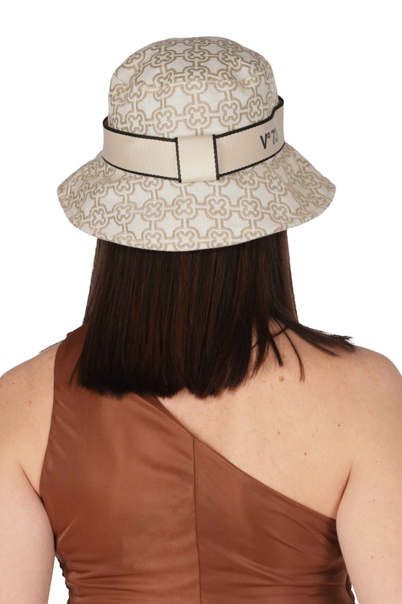 Il cappello è realizzato in poliestere e poliuretano con motivo all over, fascia in tessuto con logo in contrasto colore.