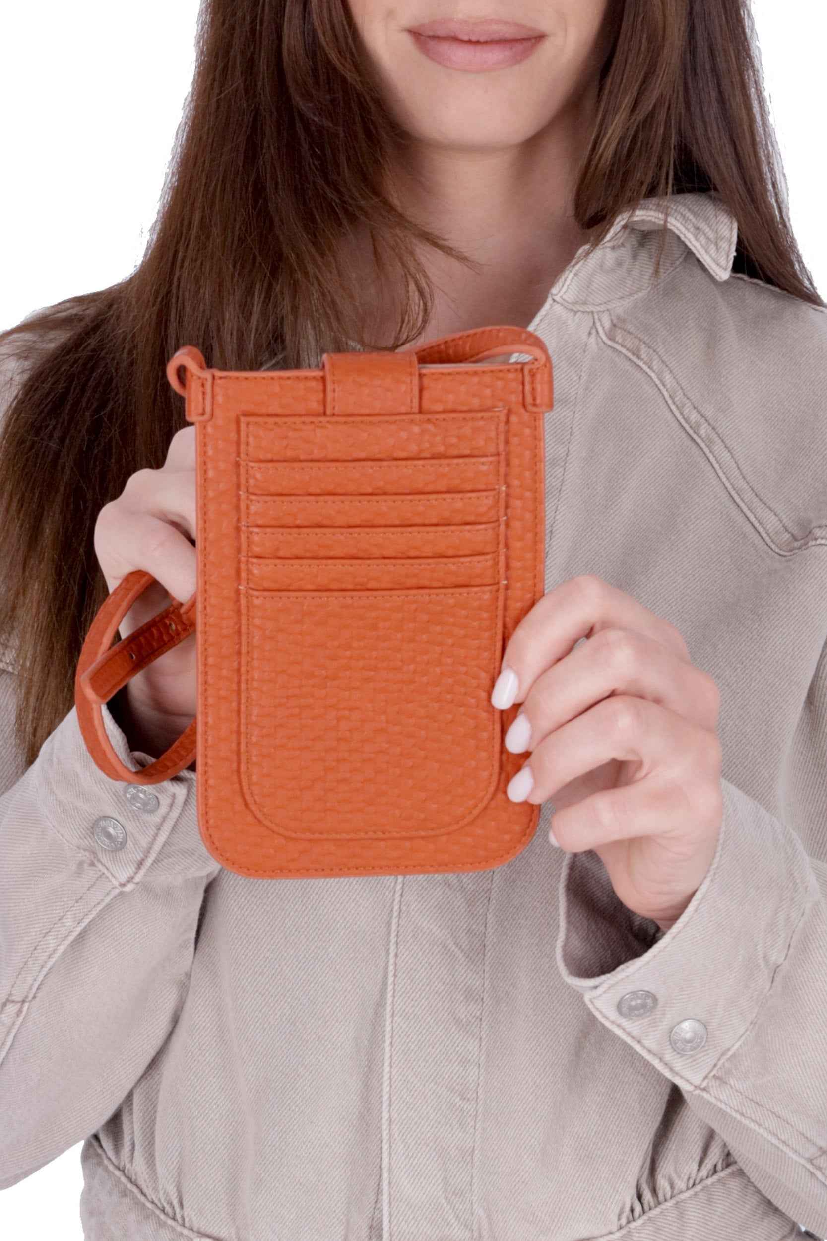 La borsa porta cellulare è realizzato in poliuretano, con logo in metallo sul davanti.