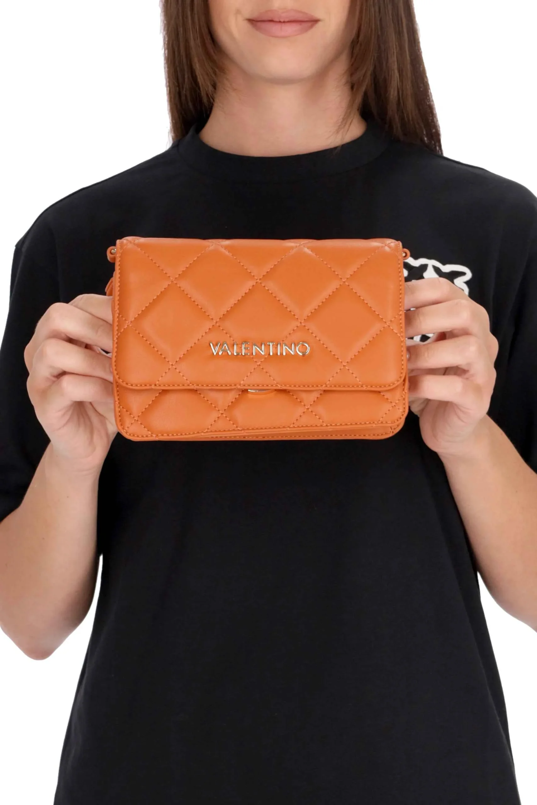 La borsa è realizzata in poliuretano effetto trapuntato, con logo in metallo sul davanti.