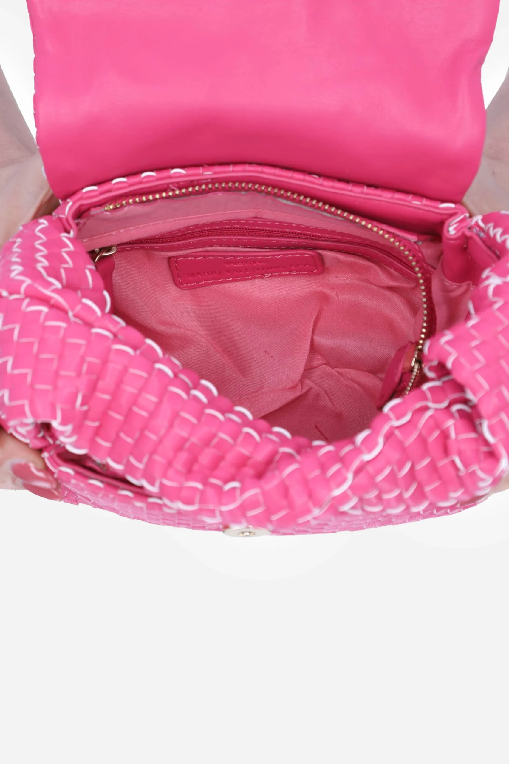 Presenta logo in metallo, manico superiore, tracolla regolabile e rimovibile, chiusura a patta con bottone a pressione.