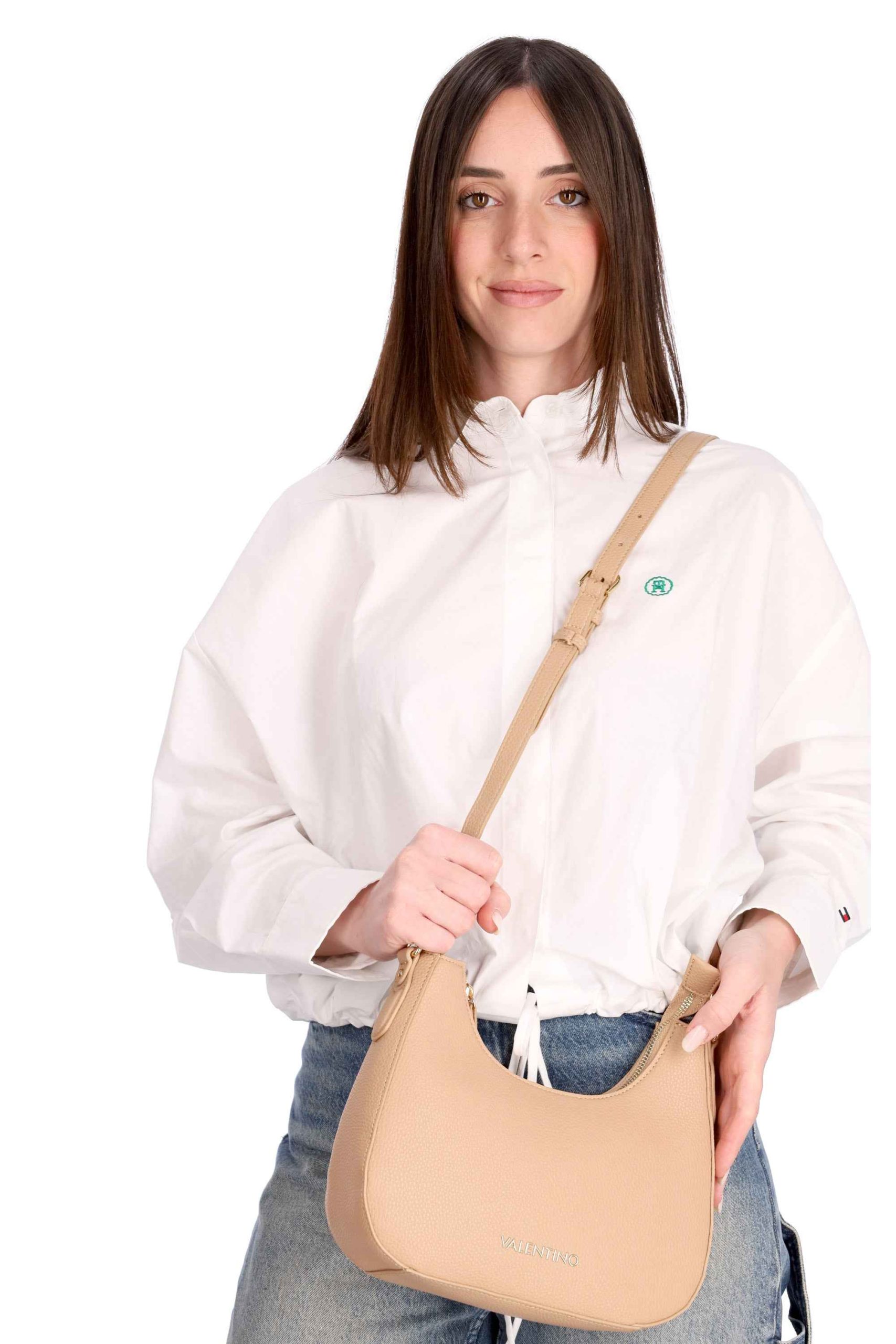 Presenta manico superiore rimovibile, tracolla regolabile e rimovibile, chiusura con zip.