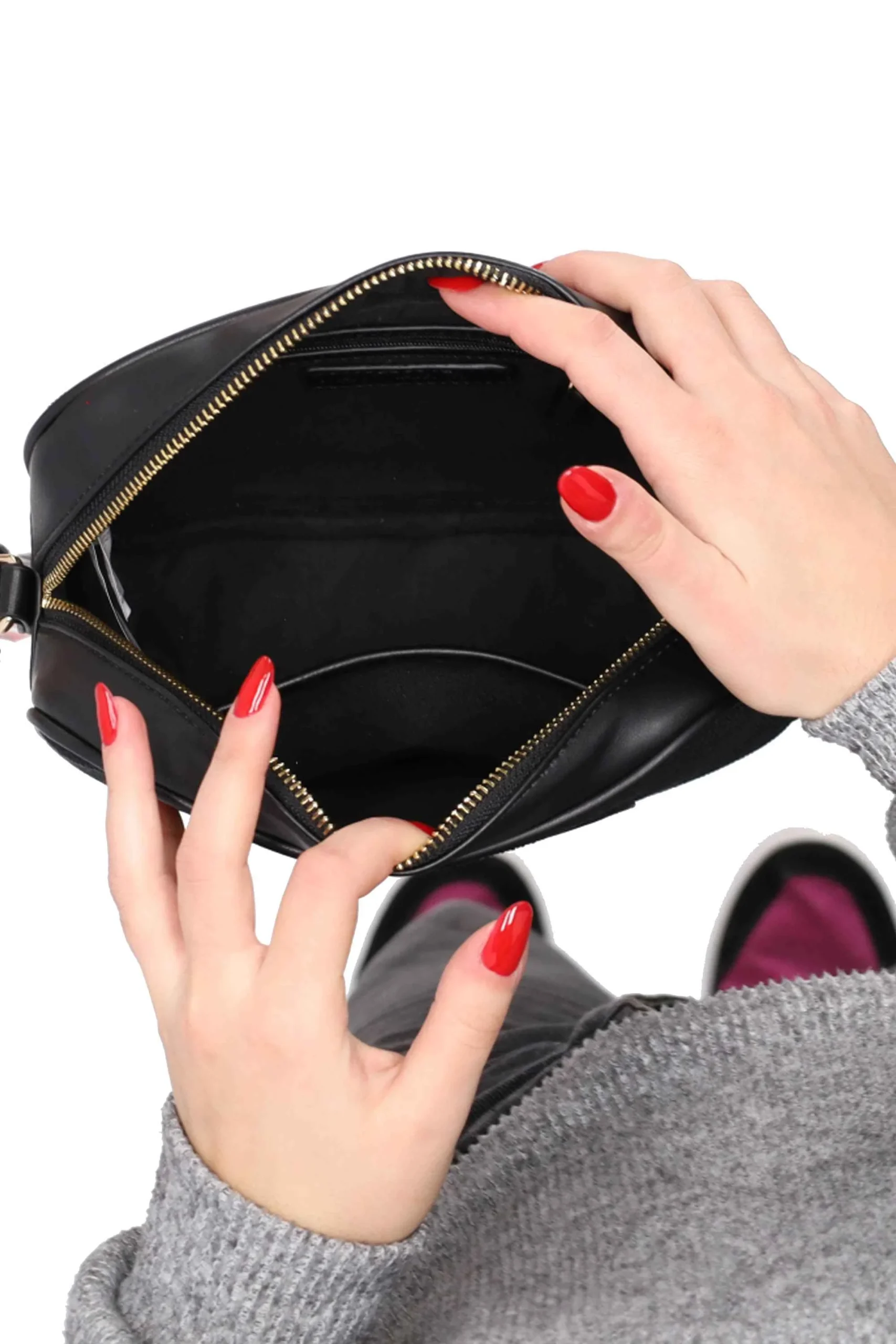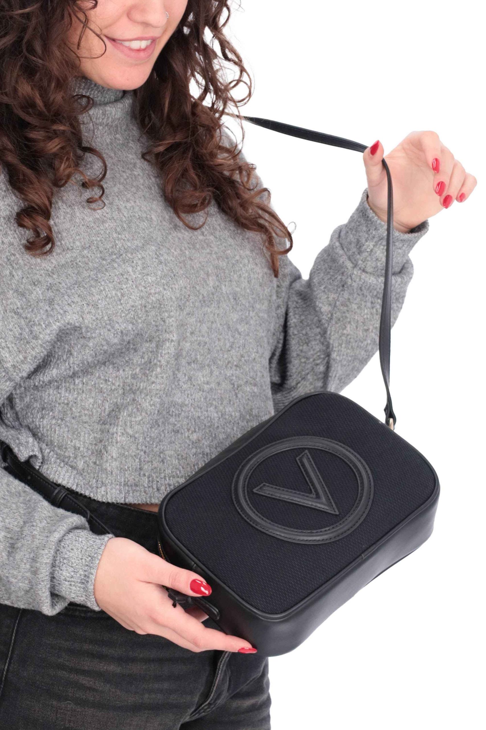 Presenta tracolla regolabile e chiusura con zip.