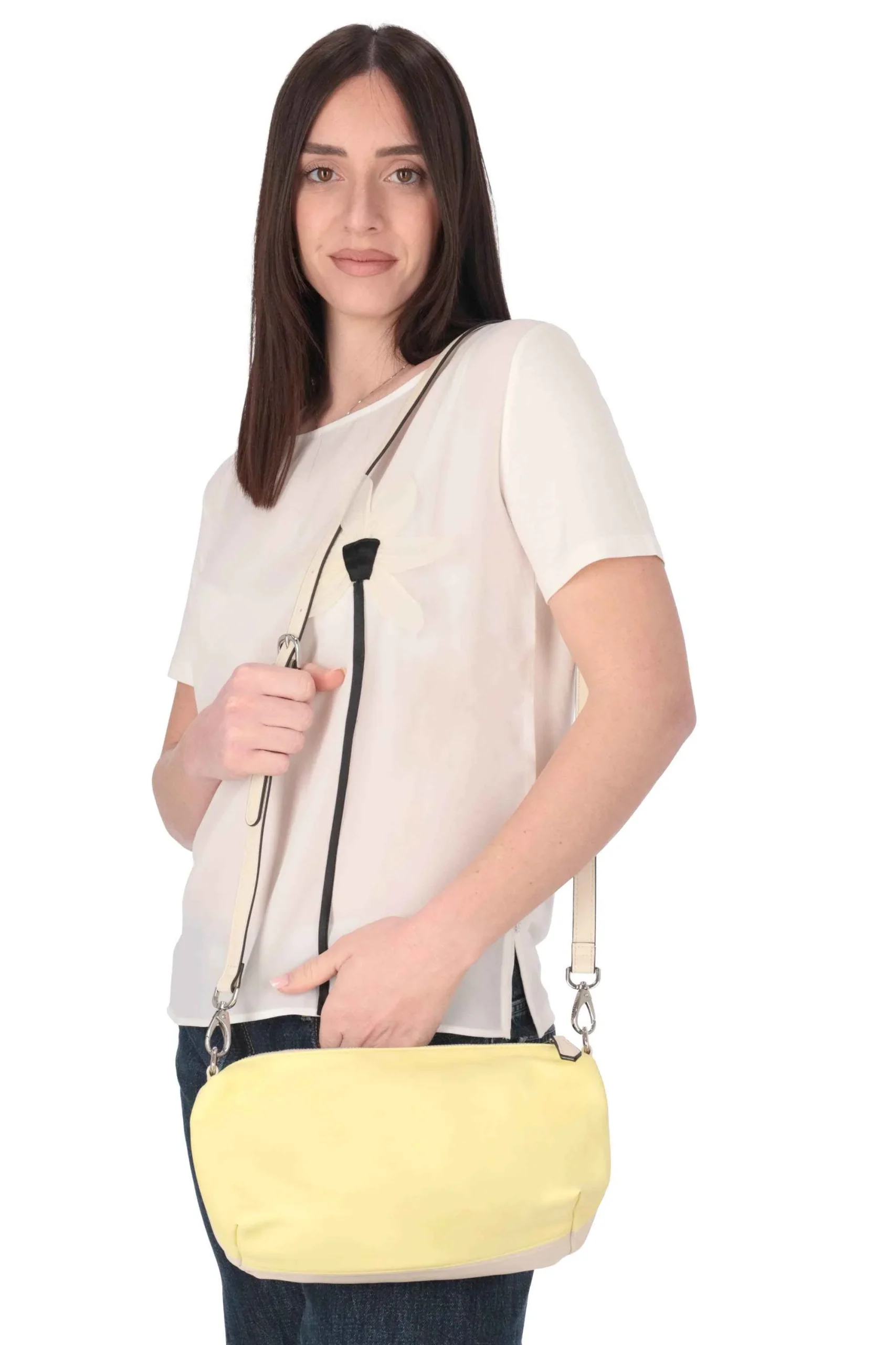 L’interno è foderato con pochette interna con tracolla regolabile e rimovibile.