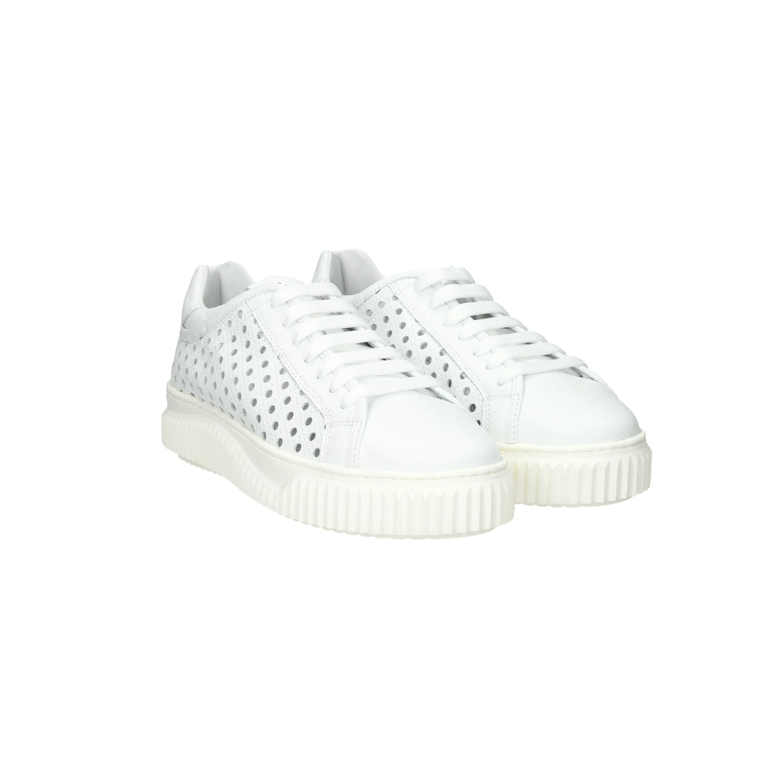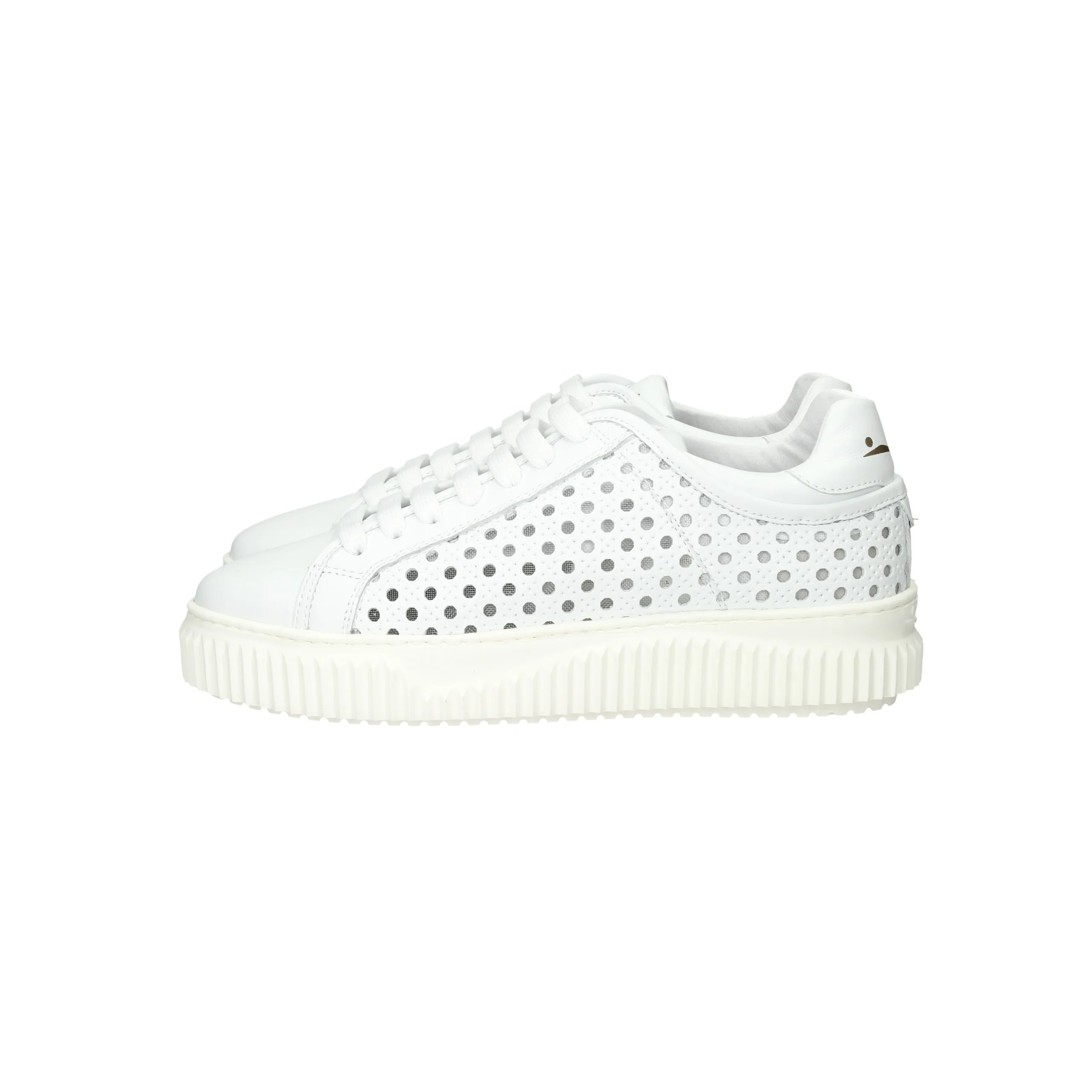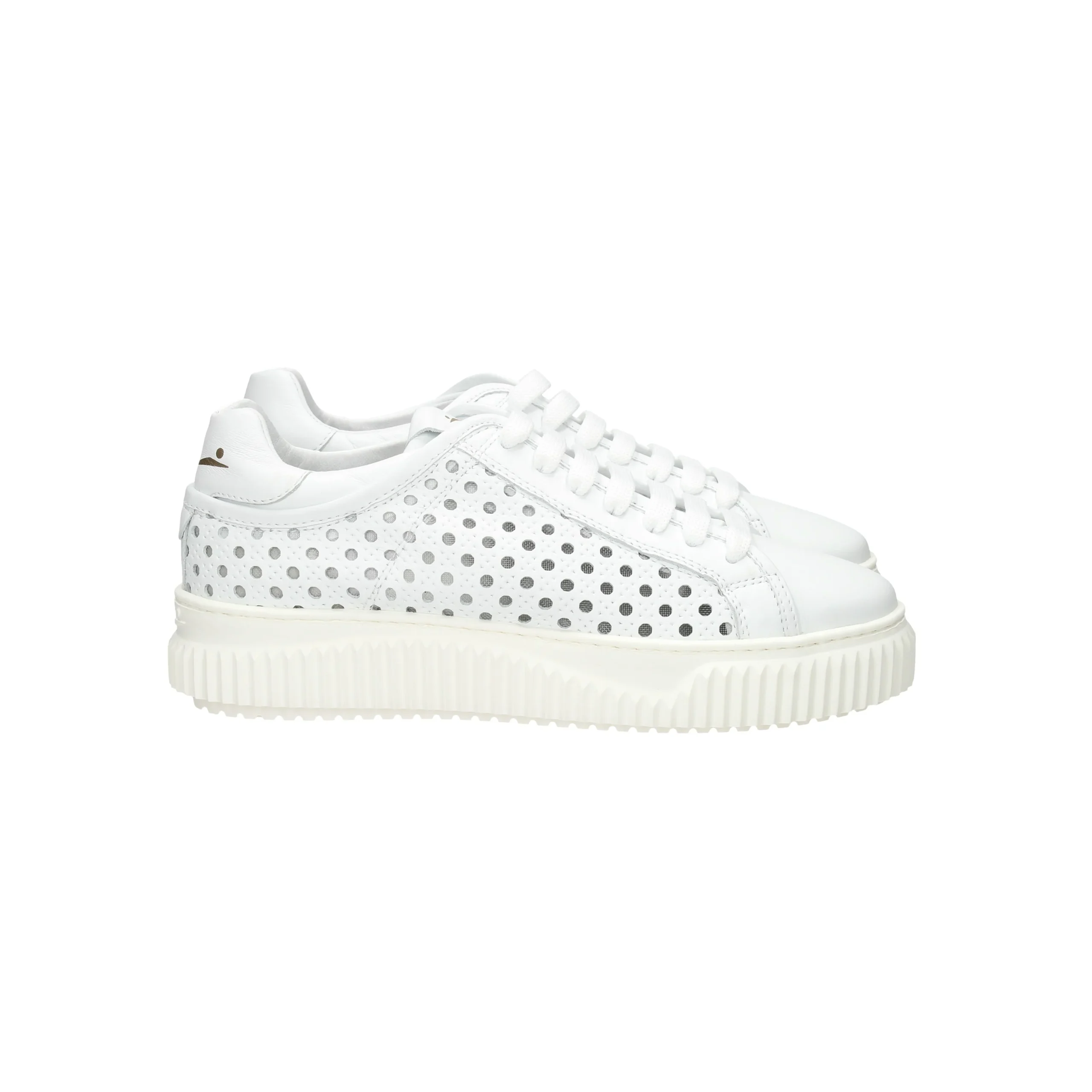 La sneakers è realizzata in pelle traforata.