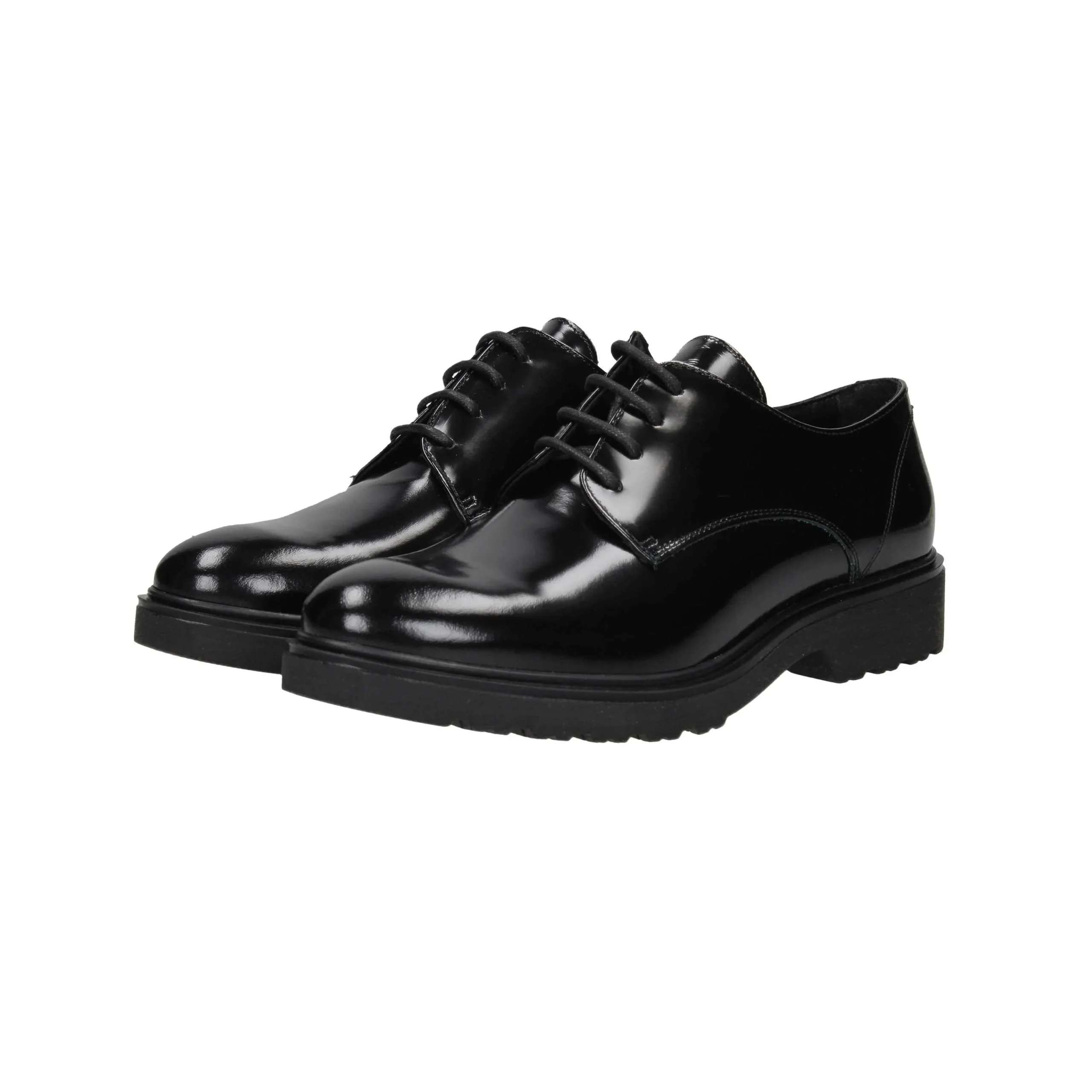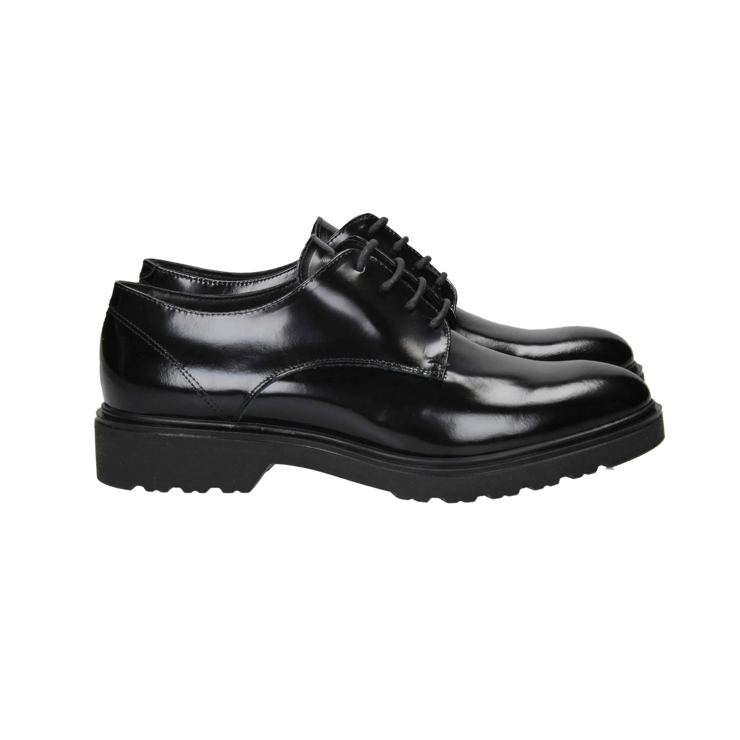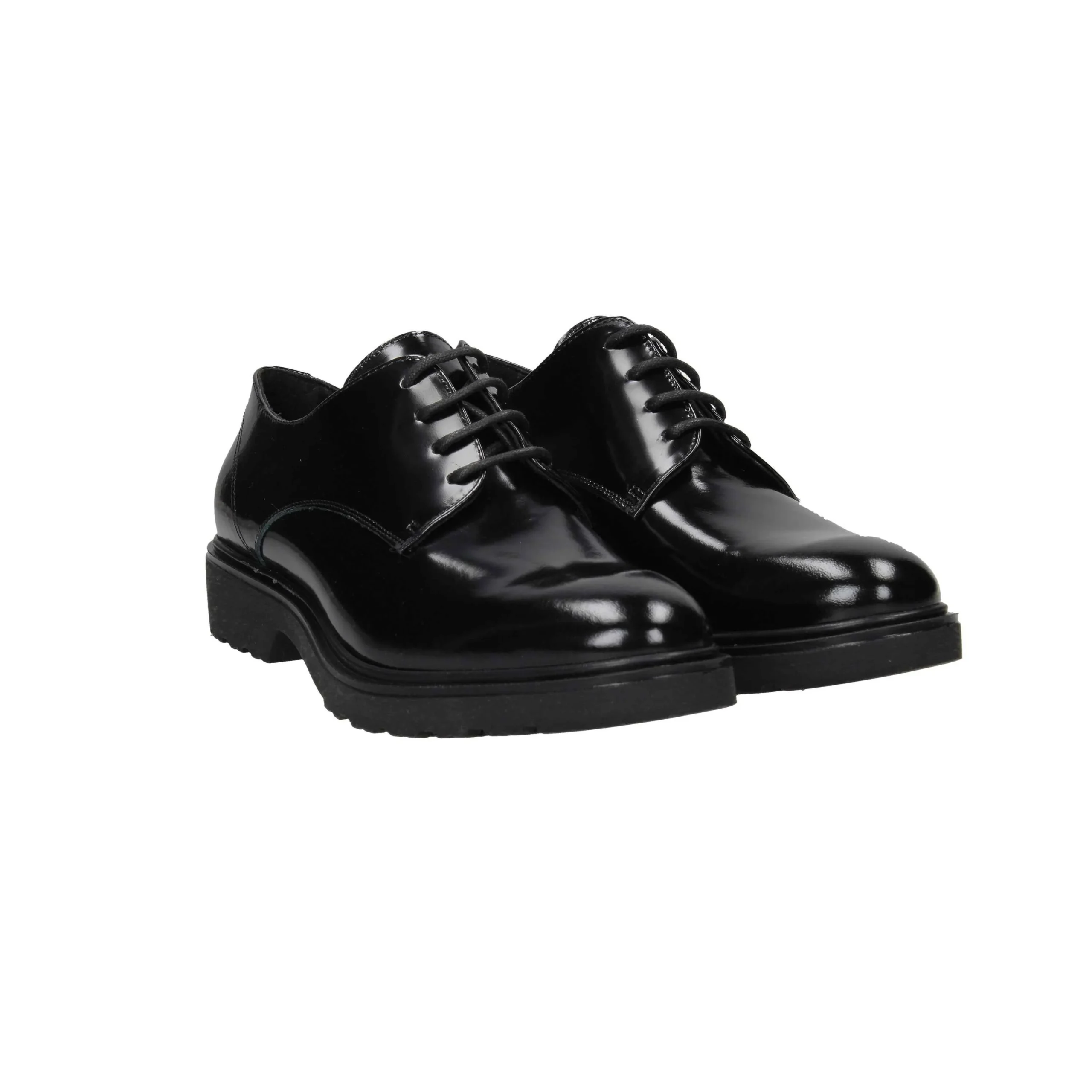 Scarpa in abrasivato con lacci in nylon, tacco alto 3cm, suola in gomma, fondo antiscivolo, interno in pelle.