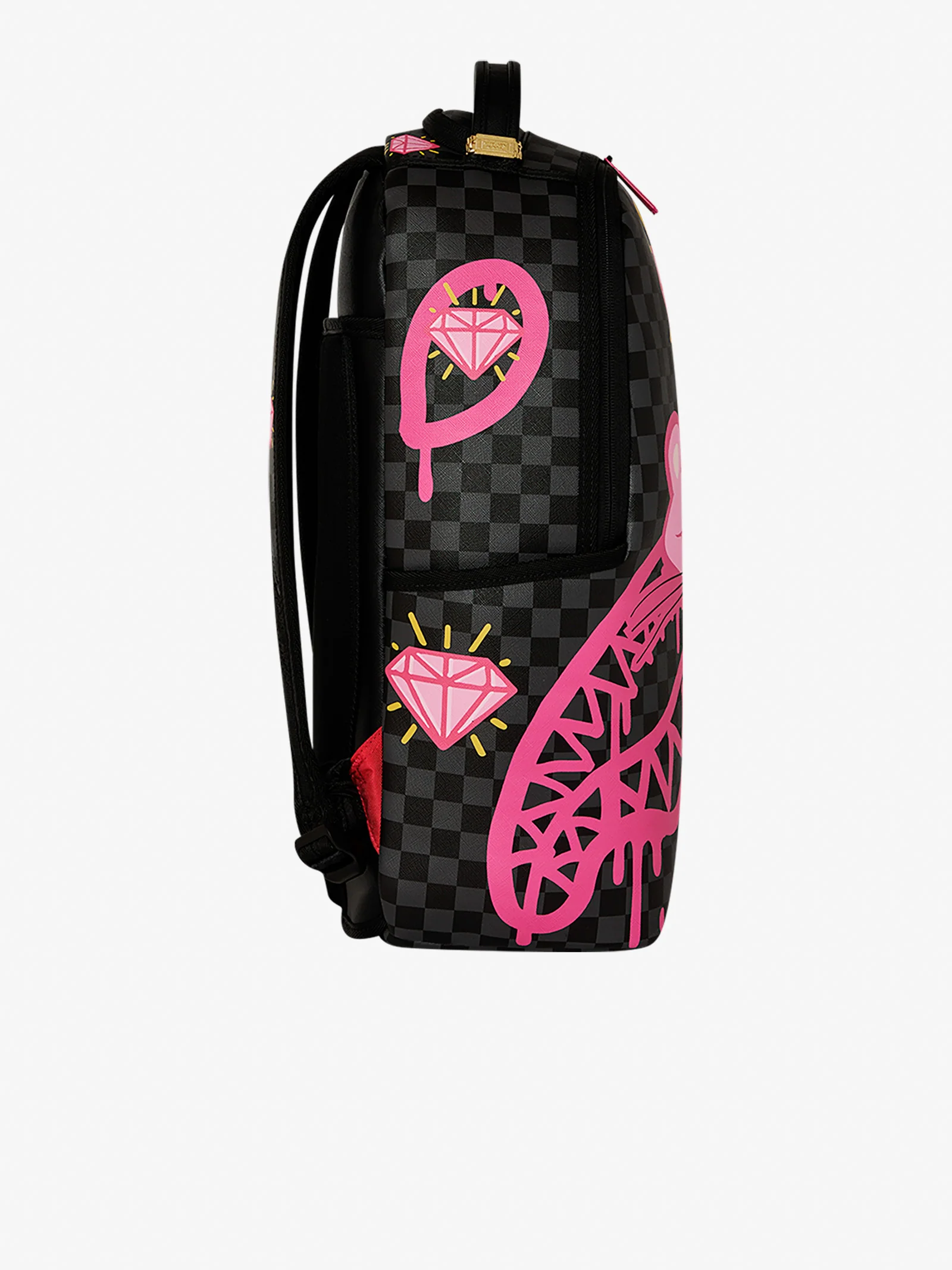 Dettagli: Tasca frontale con cerniera. Tasche laterali. Tasca portaoggetti con cerniera. Scomparto separato per occhiali da sole in velluto Schienale ergonomico imbottito in rete. Cinghie regolabili per una vestibilità personalizzata. Cerniere dorate con ferramenta in metallo. Distintivo metallico “Sprayground Authentic”. La manica posteriore scorrevole si collega al bagaglio a mano per liberare le mani. Scomparto separato per laptop in velluto. Tasca portaoggetti di rete.